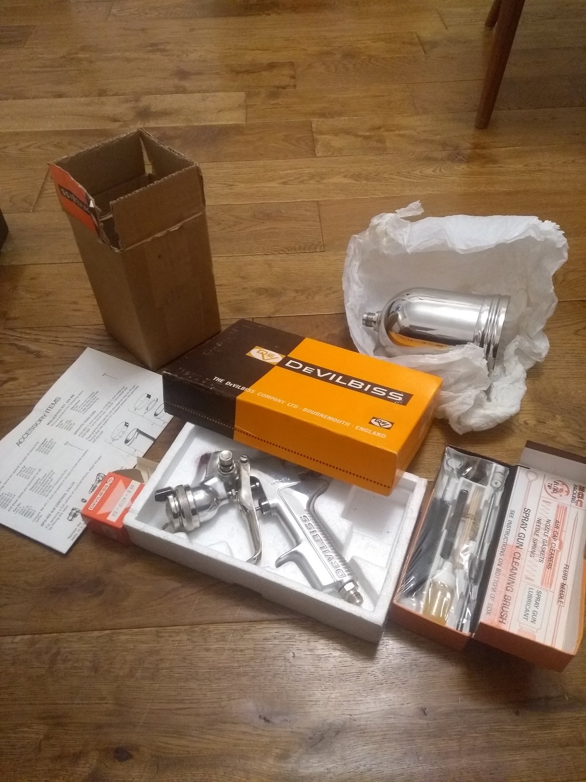 Well I liked Mr C's spray gun so much I went hunting on fleabay...found a job lot of air tools for sale. In the lot was exactly the same gun....looks like it's never been used. Very happy man indeed....it even came with a service kit too.