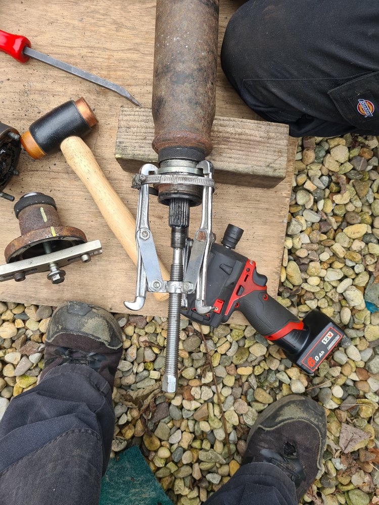 Luckily my mate down the road popped round and lent me his puller set or I wouldn't have got the center bearings off.