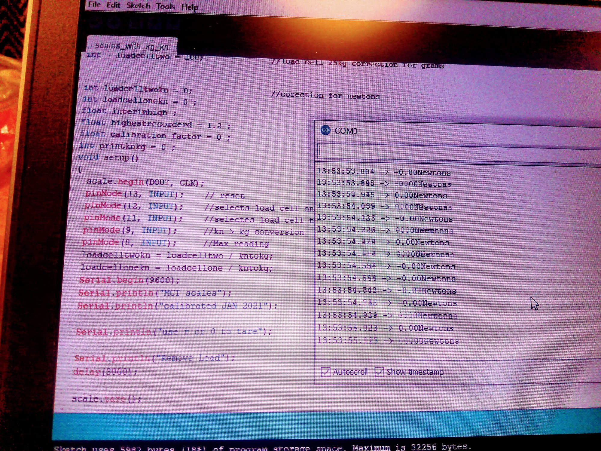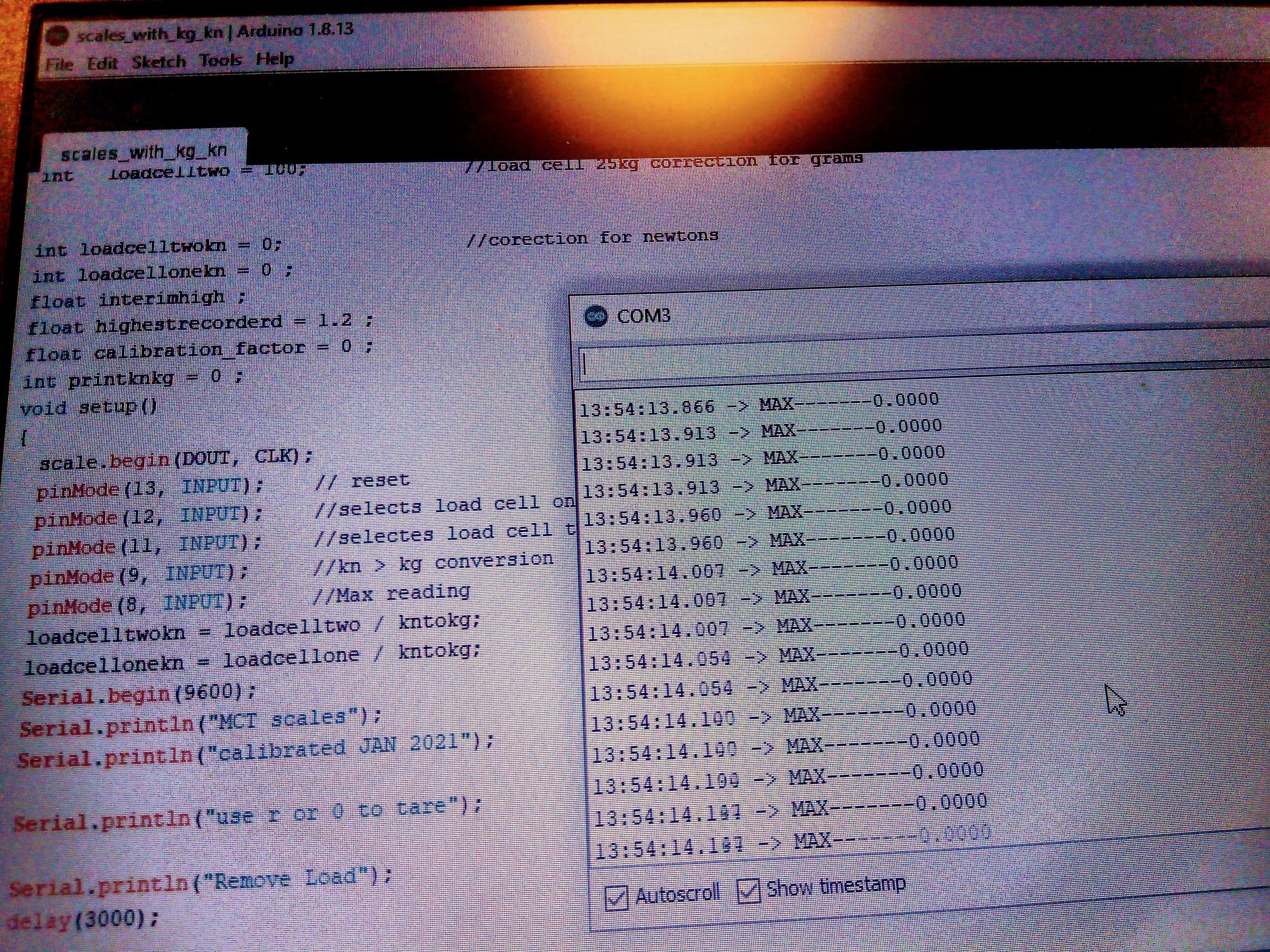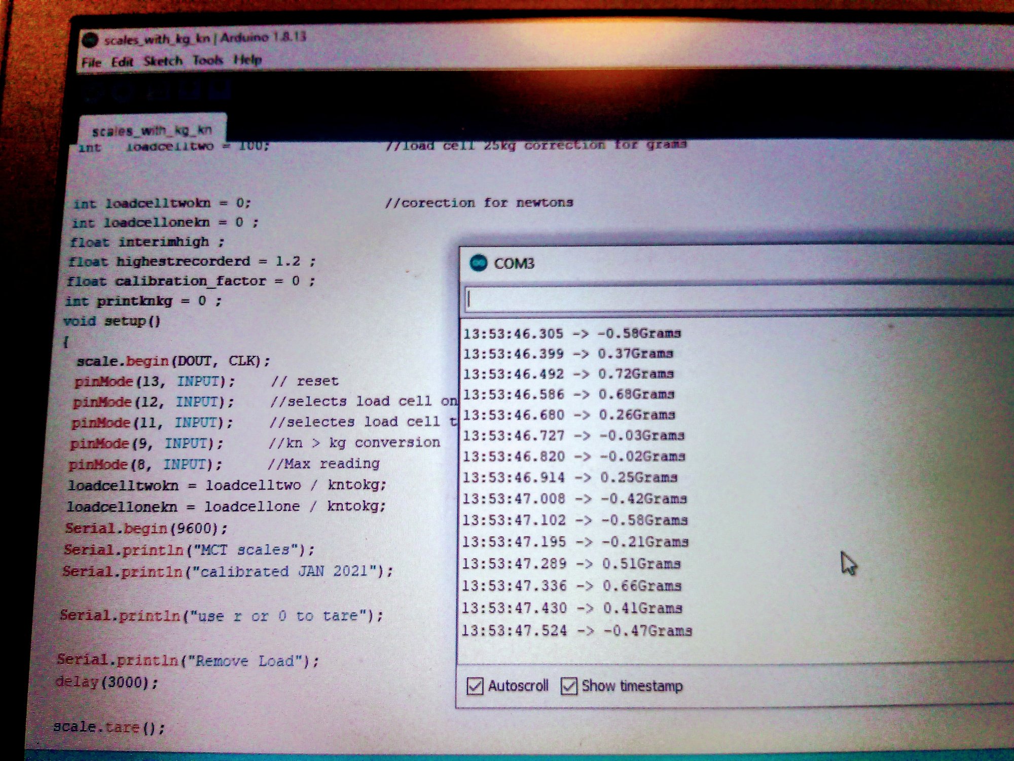 With this i can change the calibration factor for upto 4 loadcells, go from newtons to grams and record the max reached number.
