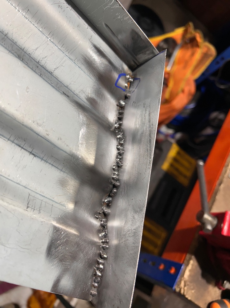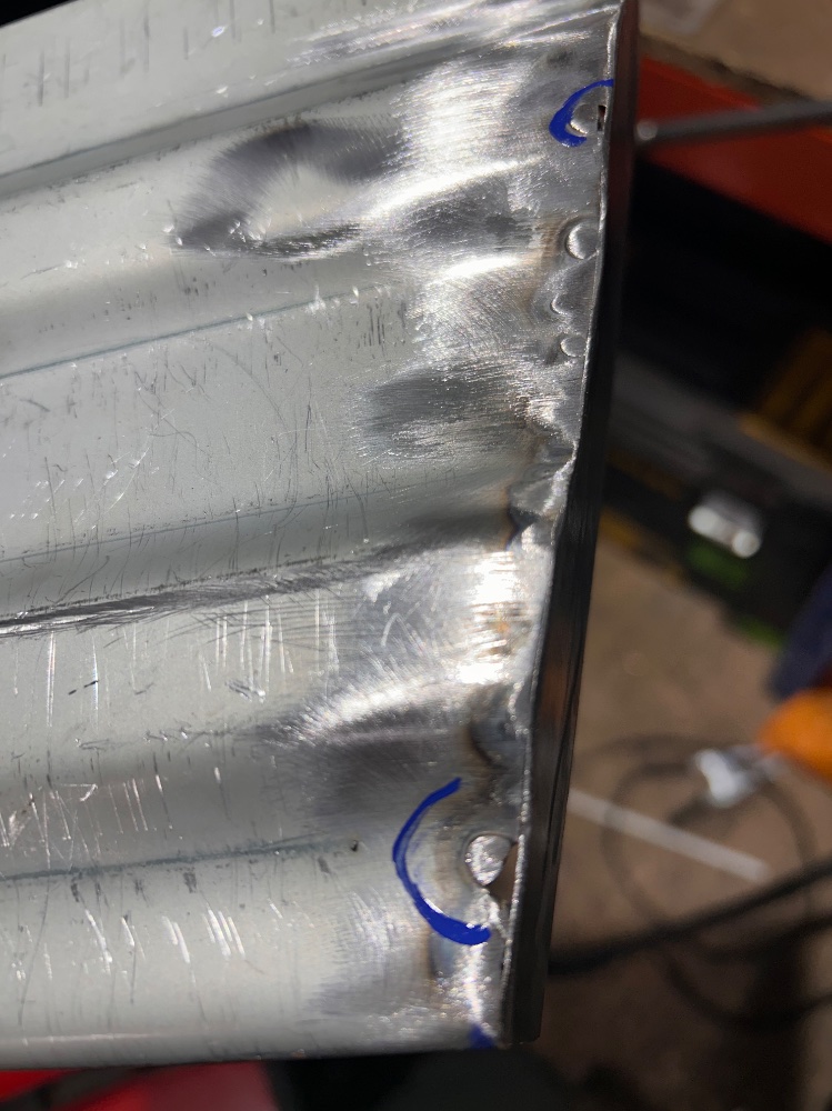 I had two blow throughs early on, as I was trying to walk the weld from one panel to another.
