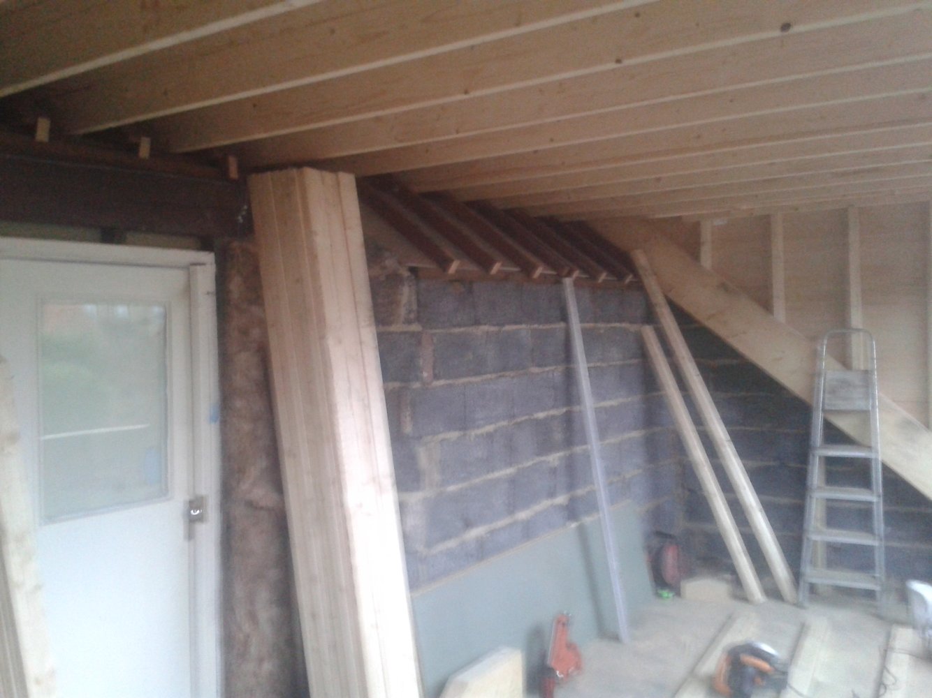 It has been lined with plasterboard and expanded poly batts so as to make a nice, cosy loft space for the previous owners to place their train set in. This means there is no easy way to look at the felt from inside. 1970s build. If I'm going to scaffold and strip the roof I'd like to plan ahead and think about what to also do at the same time.