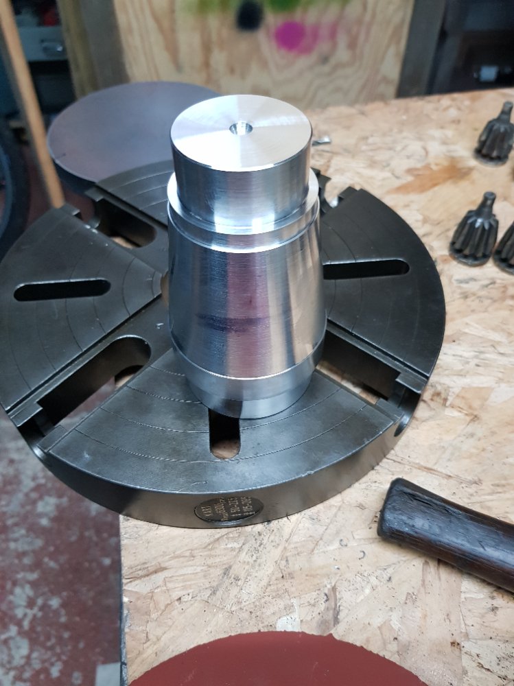 Final result is a copy of the chuck nose I blued two back plates and the taper is perfect , I couldn't get a 5thou feeler in-between face and the back plate and im happy with that