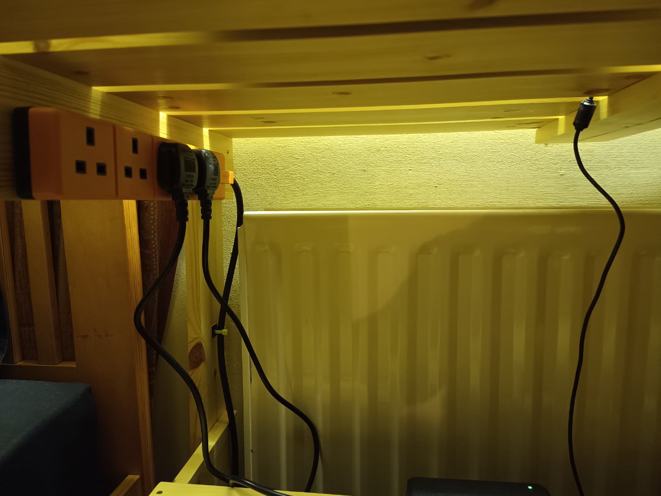 Also wired up a permanent four socket extension for that bench, today, as there's no power socket in that corner. 1.5mm rubber flex. That stuff's like battling a snake when you're trying to wire up.