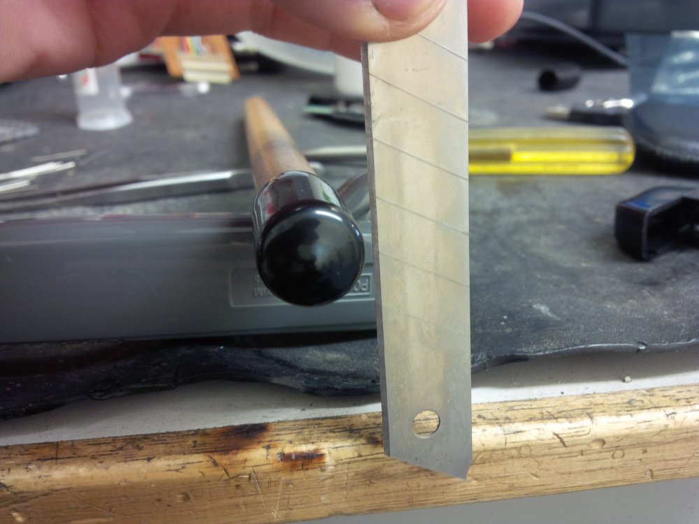 I need to cut down some PVC masking caps (pvc rubber, not hard plastic), reducing the length by 15mm. I have a mandrel to put them over that will fit in the chuck, I need to now mount a stanley knife blade onto the toolpost.
