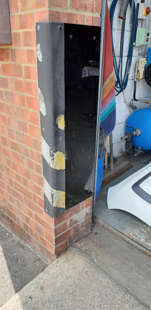 Corner protectors aren't really to protect the corners just to highlight them. If you want to protect car / corner as above put a curb in.