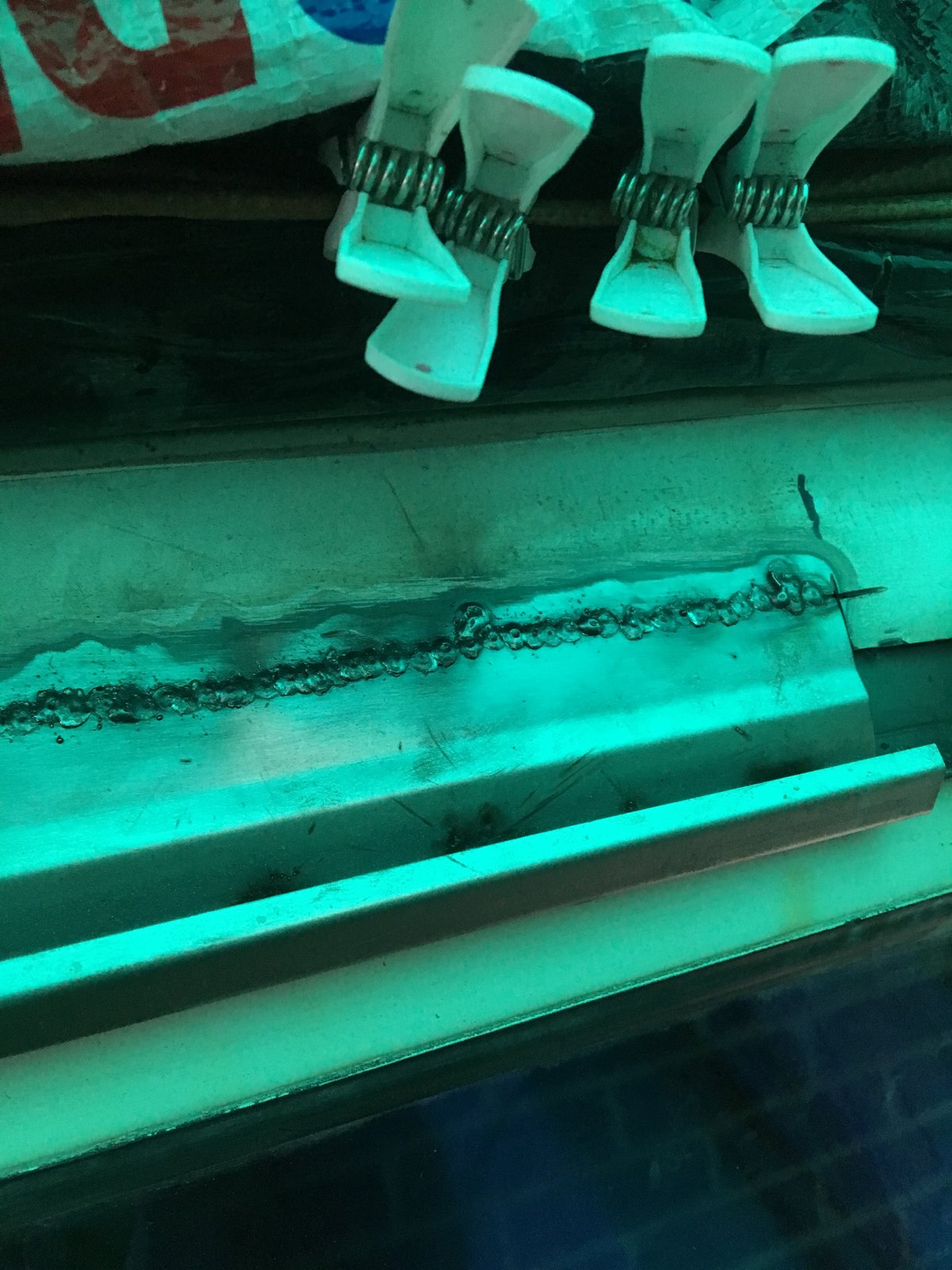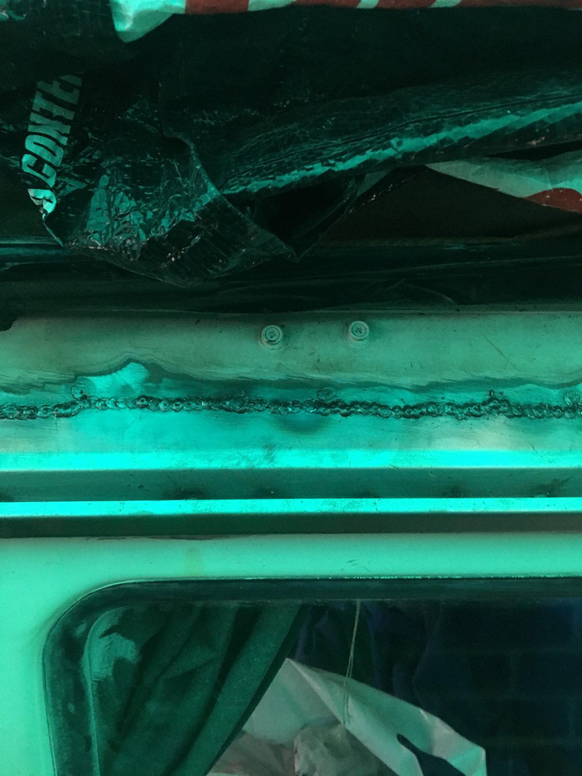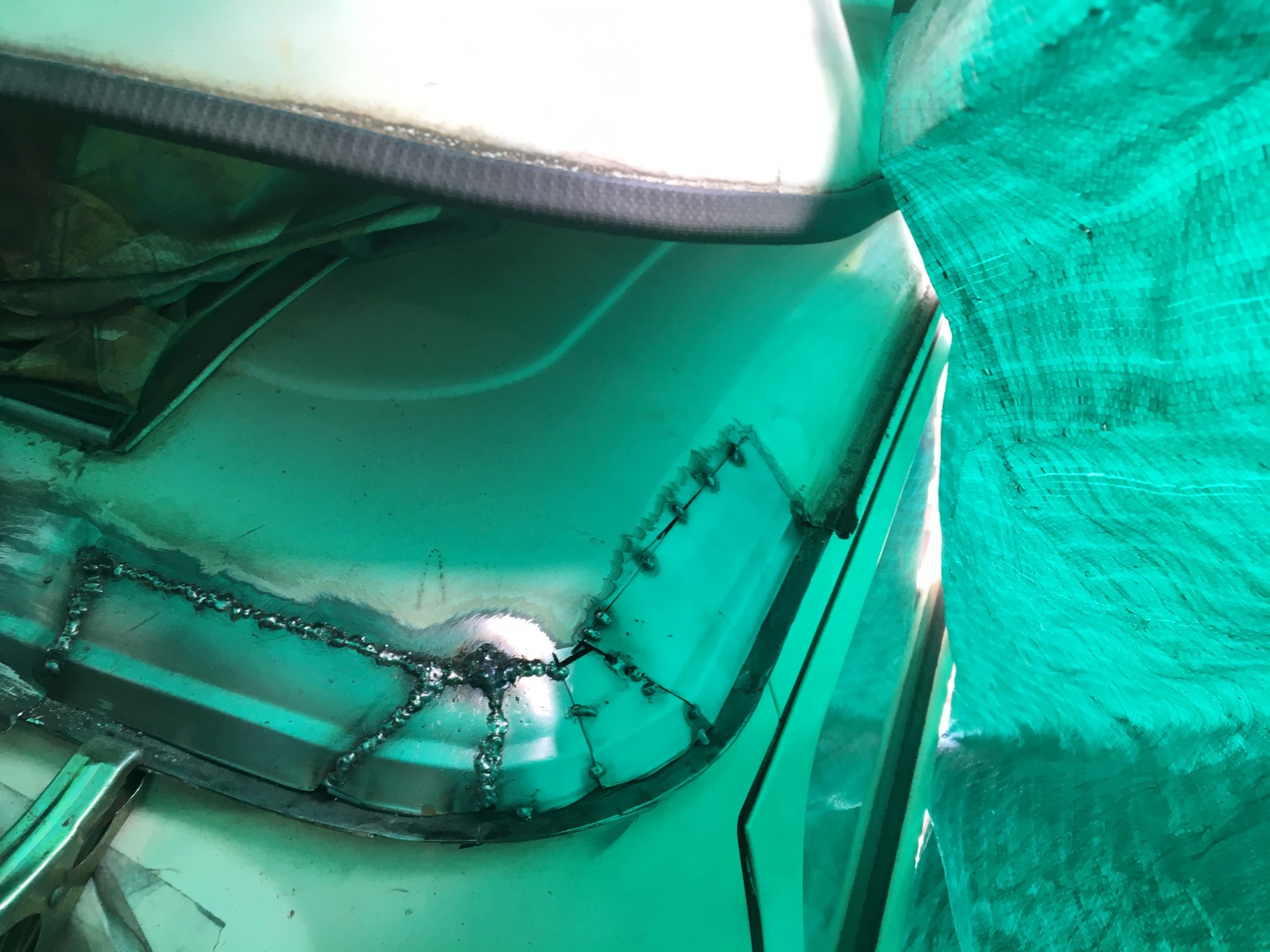 First repair panel welded in. I followed the same process as before by fitting a support strip, using spot welds, under the parent metal.