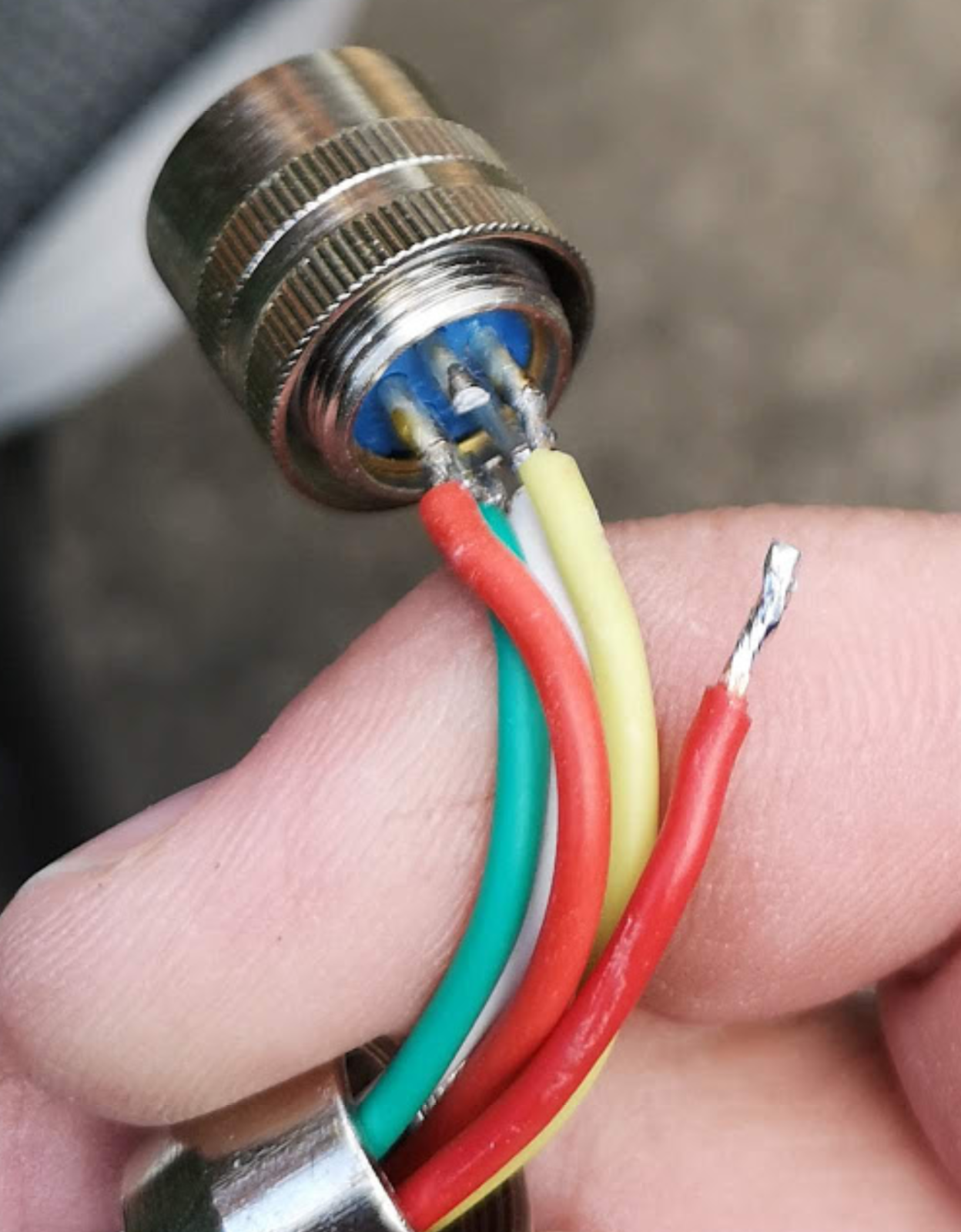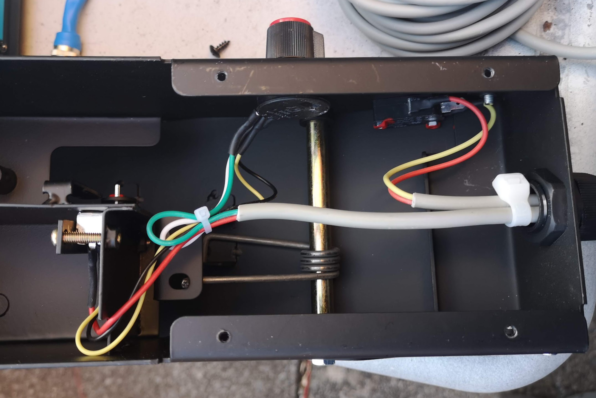 You can see the switch (nearest the cable entry), the ranging (rotary) pot (middle), and the pedal (linear) pot (further from cable entry). I think you can make out the colours from these two photos.