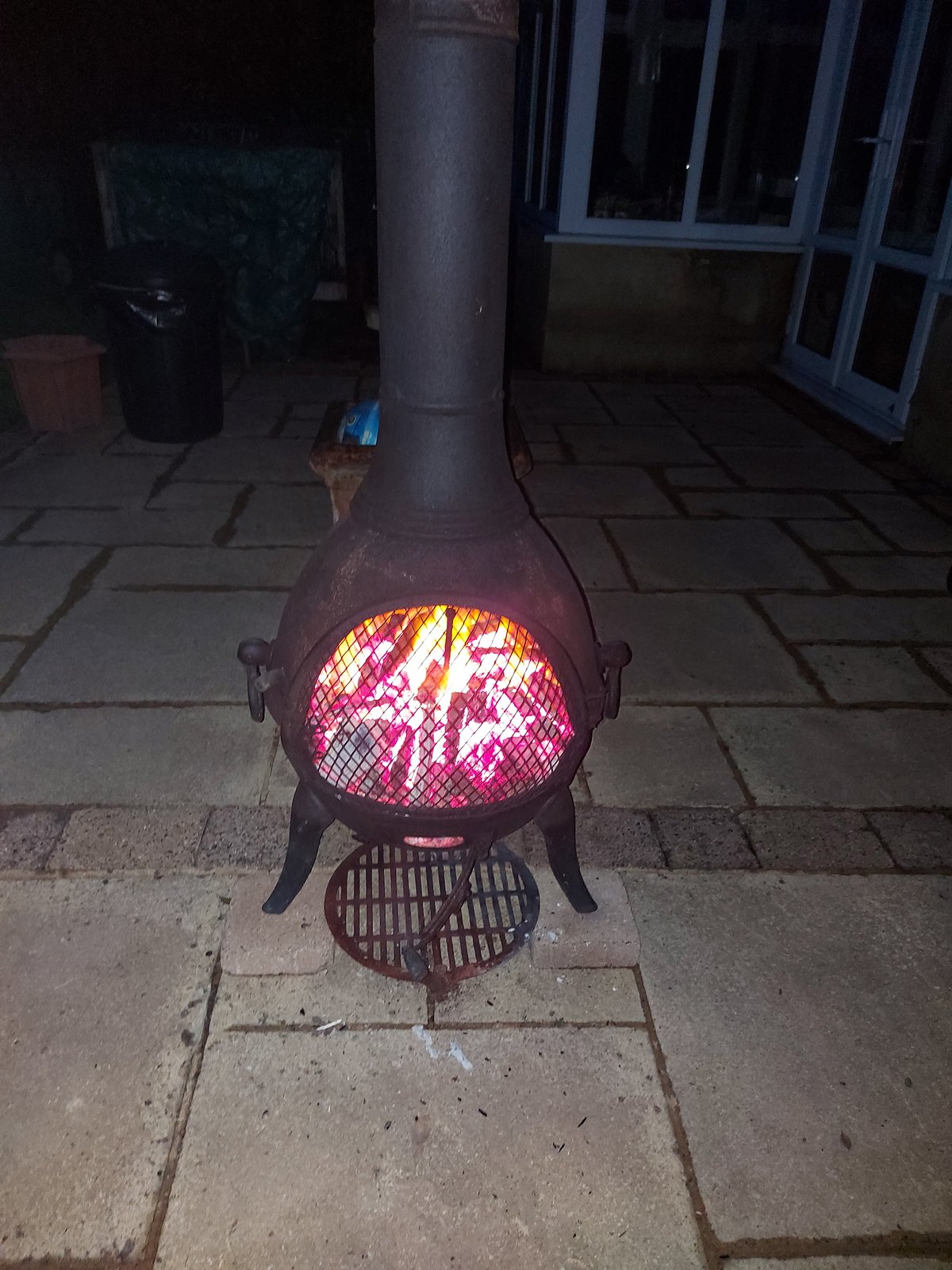 I did read that as chimaera, scrolling down and seeing the picture I realise you are not sitting in a TVR, drive in movie style to watch the neighbours.A Chimenea in the front garden and invite the good neighbours?
