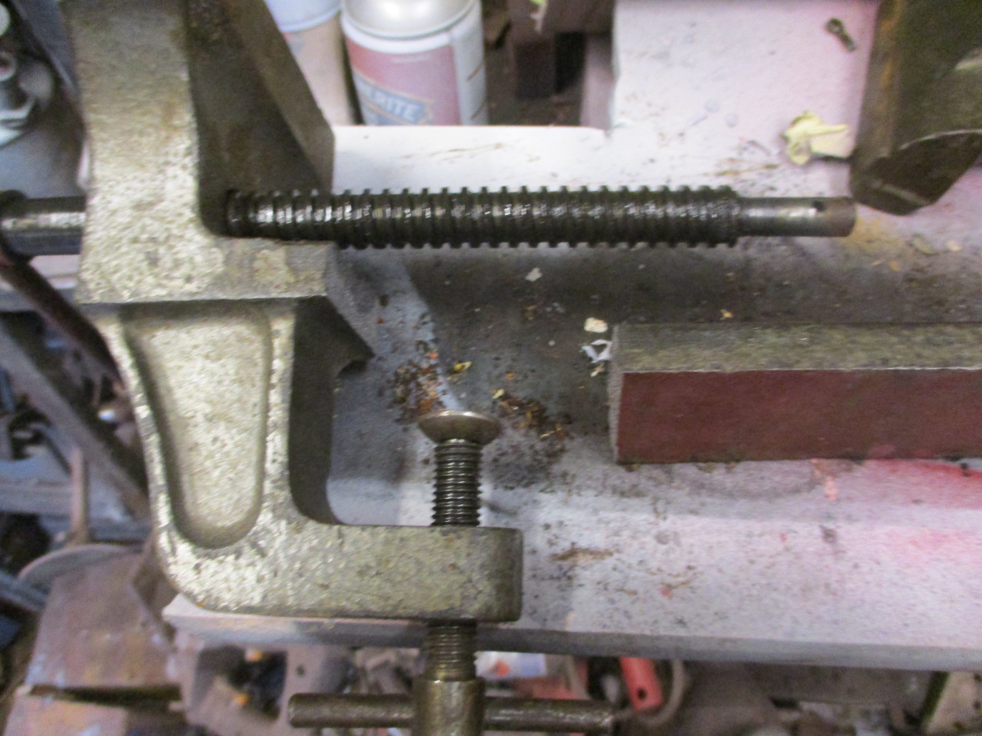 There's a cover over the back end of the thread but I mean when you open the vice jaws, the thread is exposed beneath the jaws so stuff can drop onto it (hopefully these pics will help explain what On jabbering on about)