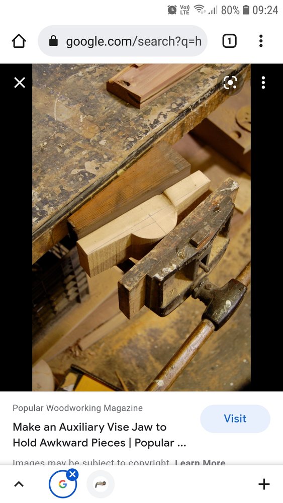 You could cut a piece of round bar in half ( length wise ) and weld it onto the back of your new jaw to simplify fettling...................................................I want to make a wobble jaw type thing to allow holding triangular pieces in a vice. Like this, but not wood.