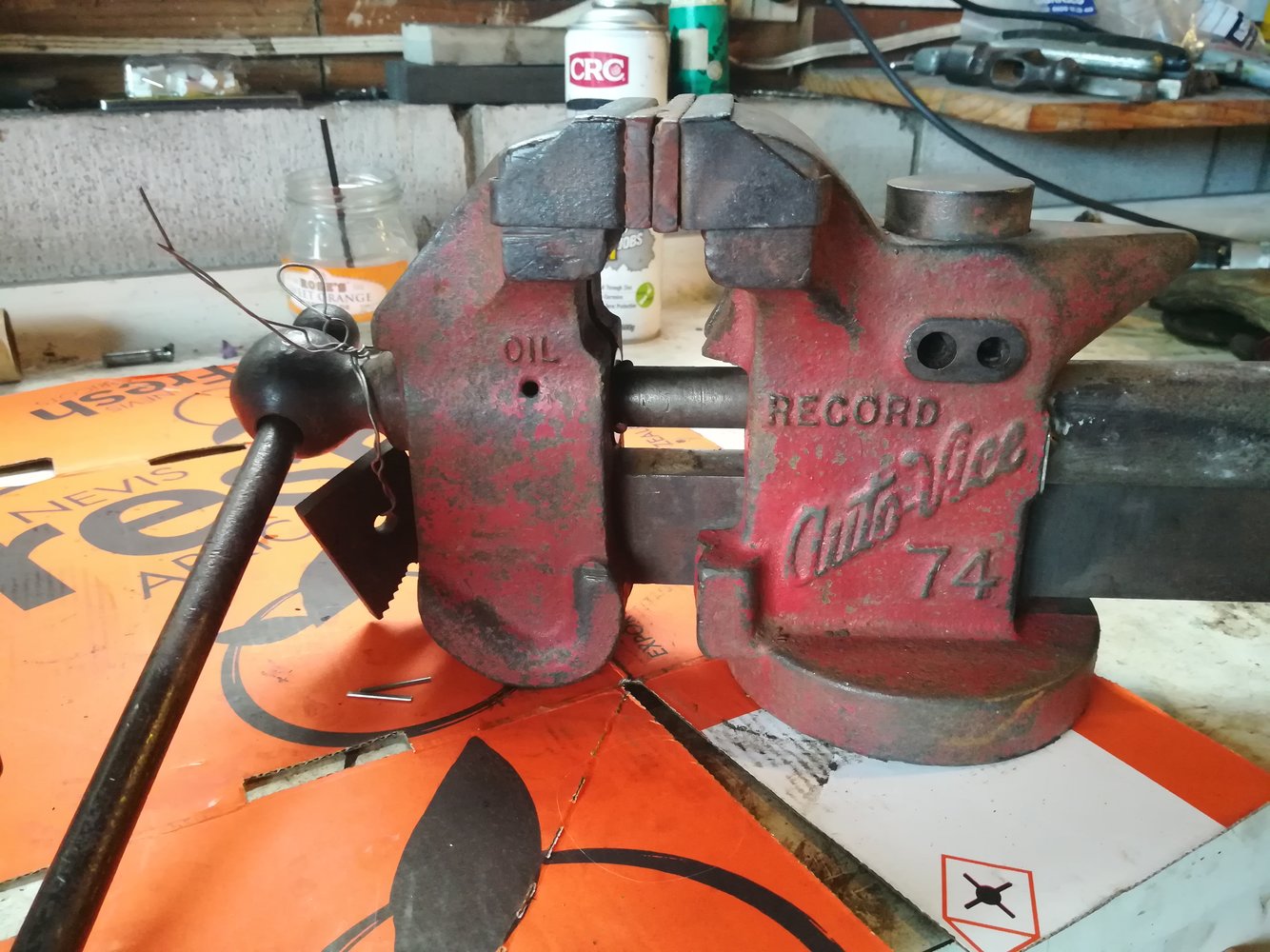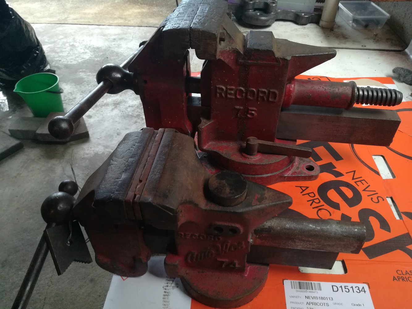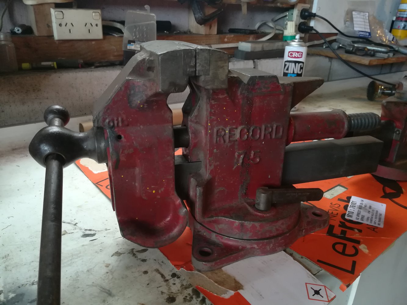 Yip mine is a late model just before the square nose came out in the late 60s, it’s ductile iron and the anvil is part of the cast, threads were bsw, it’s been oil ragged and now looks impressive in the line up. Note the 75 had a very long handle compared to othe vices of similar sizeI believe yours to be post 1950 as it does not have the ‘All Steel’ legend as Record stopped all-steel production of the No.75 in 1939; most likely due to steel demands during WW2.