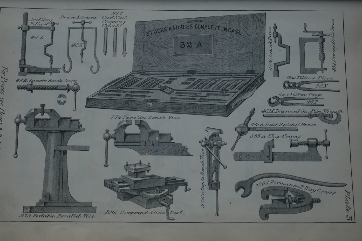 Beautiful pieces, love to have some of those in the house or workshop, works of art. I always buy what they call ship cramps if I can find them at the right price as they are the sort of thing you never know when you're going to need them.You may have come across the Sheffield List - this one (8/9th ed) is from 1869. It was a standard catalogue with prices, shared by Sheffield makers - they could only really price compete on volume discounts or delivery etc. (we'd call it a cartel today).