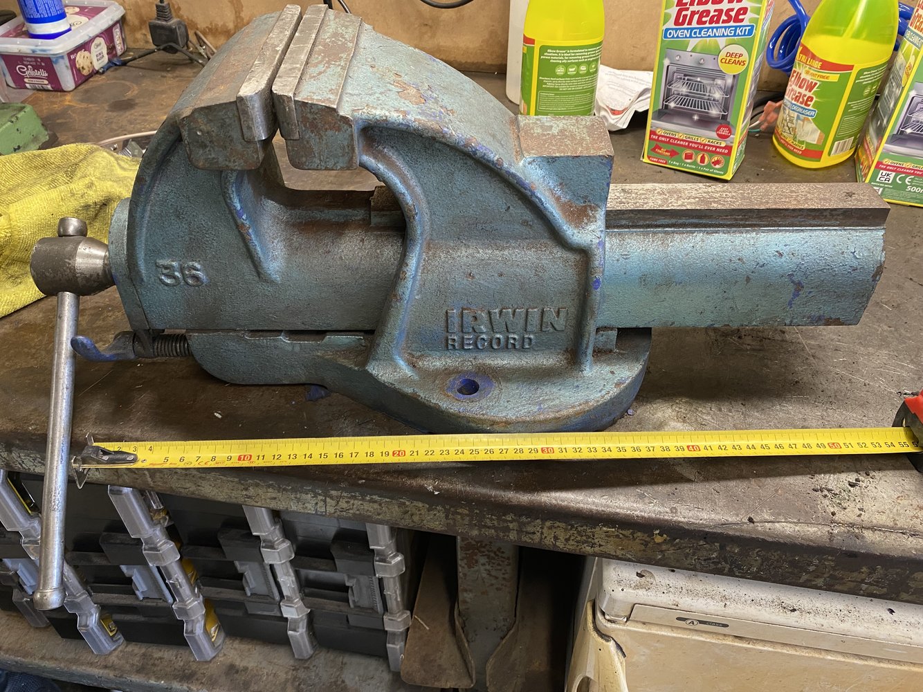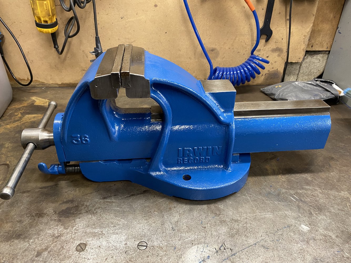 Say what you will about Record vices after Irwin bought them out but it is better machined and feels more solid than the other old Record 36 I have. Anyway strip down, clean and wire wheel the horrible paint job off, repainting, assembled and oiled up ready to be moved on to give it's new owner many years of abuse.