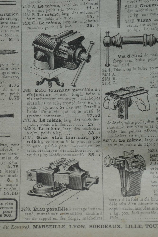 I thought my well-made mini was a one-off until I saw a 1912 Manufrance catalogue (a big sales op that sold items from all over, so doesn't mean the vice was French) showing 3 models from 2 1/4 - 4 in