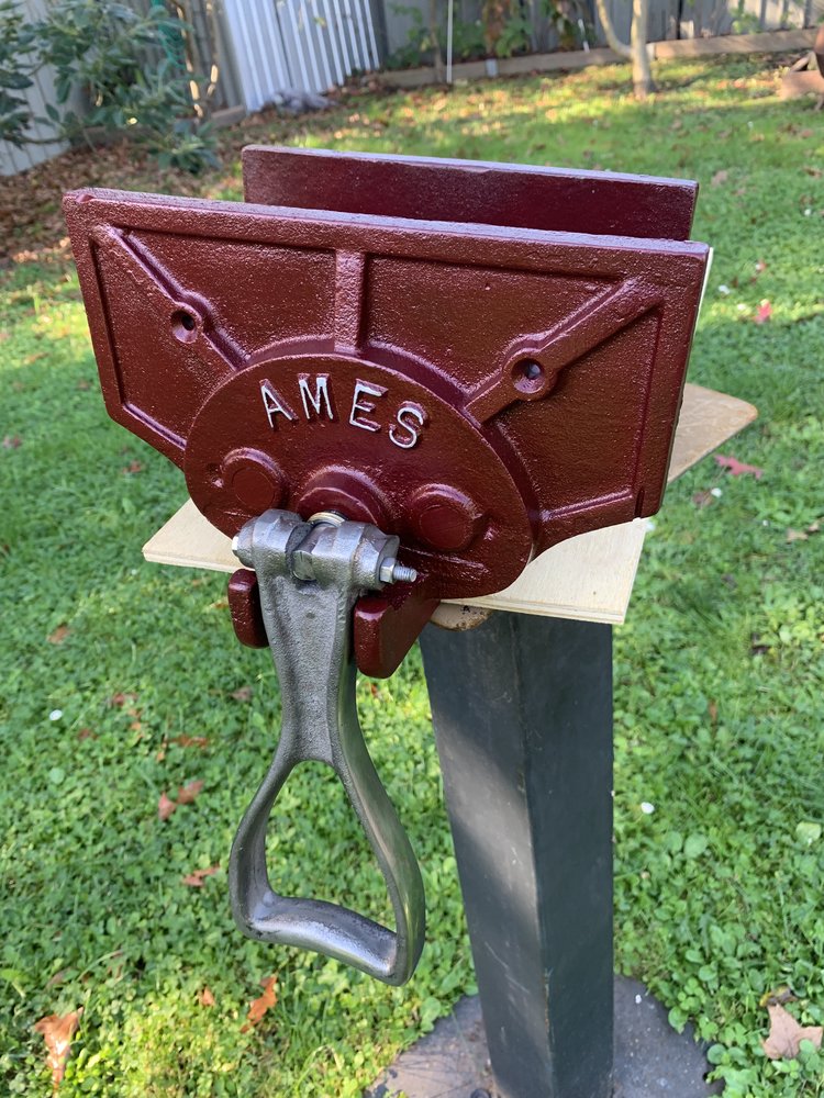 my Shipley-made no 9 Parkinson's Vice (with replacement no 9A jaw faces) has a high waist, script on rt side, deco inlay and both jaw supports same length