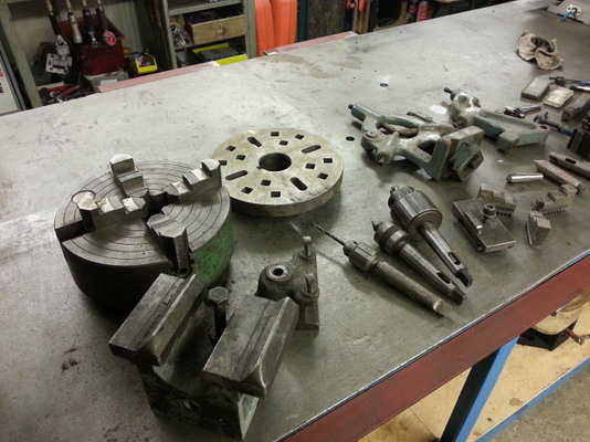 This machine needs a fair bit of tidying type work, but seems to be in basically good nick; no real bed wear, runs nice and quietly etc. It does have a DRO setup (messily) installed, but the head unit was removed for safe keeping before craning the lathe onto Matt's truck. I'm looking forward to using the lathe, but not mounting any of the accessory type stuff, lifting the fixed steady off the floor made me grunt, hoiking it right up onto the lathe bed will probably be real fun!