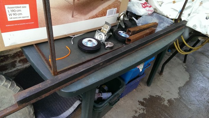 It's a nice job Adrian but I can just see that top unit getting knocked off. As a minimum I'd weld a couple of tabs on it either side and put a strap over the Tig if you didn't want to cage it in.Something perhaps I should have done some time ago. Anyone who visits my garage/workshop will know how little space I have and the MIG welder was left on the floor with me stepping over it, bottle not secure etc.