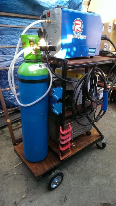 It's a nice job Adrian but I can just see that top unit getting knocked off. As a minimum I'd weld a couple of tabs on it either side and put a strap over the Tig if you didn't want to cage it in.