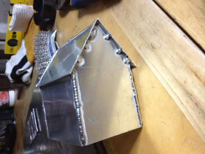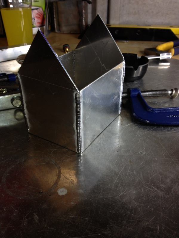 This was my first Alu sheet project, and I was quite pleased with how it welded. I used aluminium box section as a backer and guide piece to clamp at right angles and it really helped to stop the heat getting out of control.