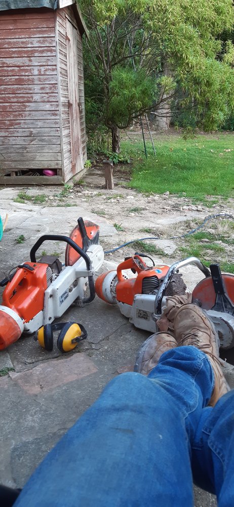 It's on the new extension and goes into a soakaway. There's another one on the other side that's also set on the footings