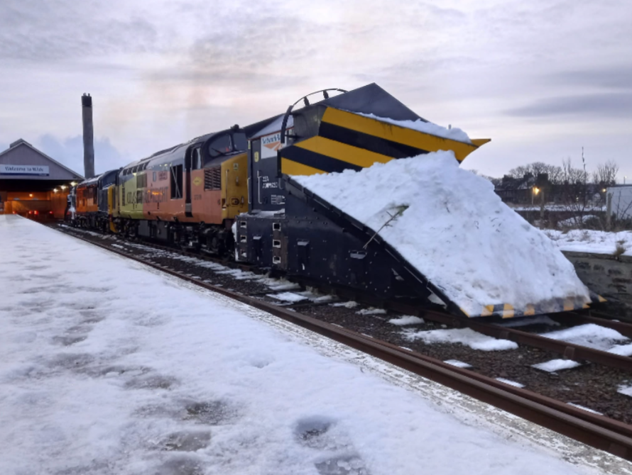 Here is the plough doing the rounds in Scotland just now. Ploughs front and back, From the comments they are 37s and 60 years old.Reading the other night that Network Rail were renting a 50 year old loco from a preserved railway as it had mini ploughs fitted to perform route checks and snow clearing in the midlands area. Similarly, they were using 60 yr old locos to drive full size ploughs in Scotland.