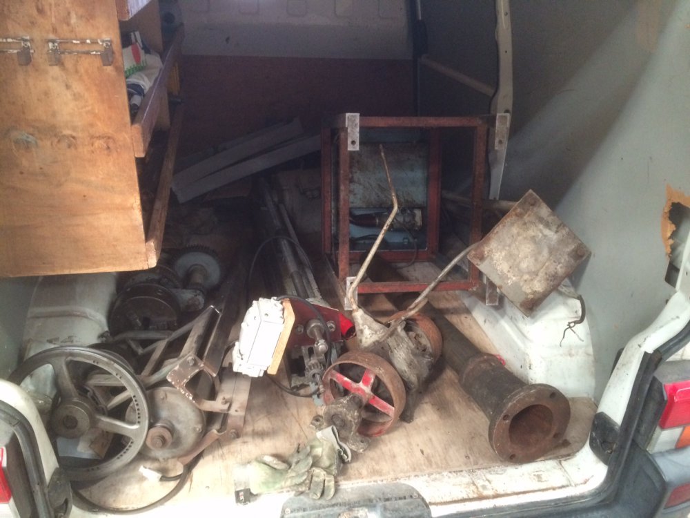 When it's put back together, its supposed to be a lathe, a cold saw and a drill press.. Quite hard to see right now - and damn, it's heavy.. Think I might have stretched it a bit with the vans weigt-limits.