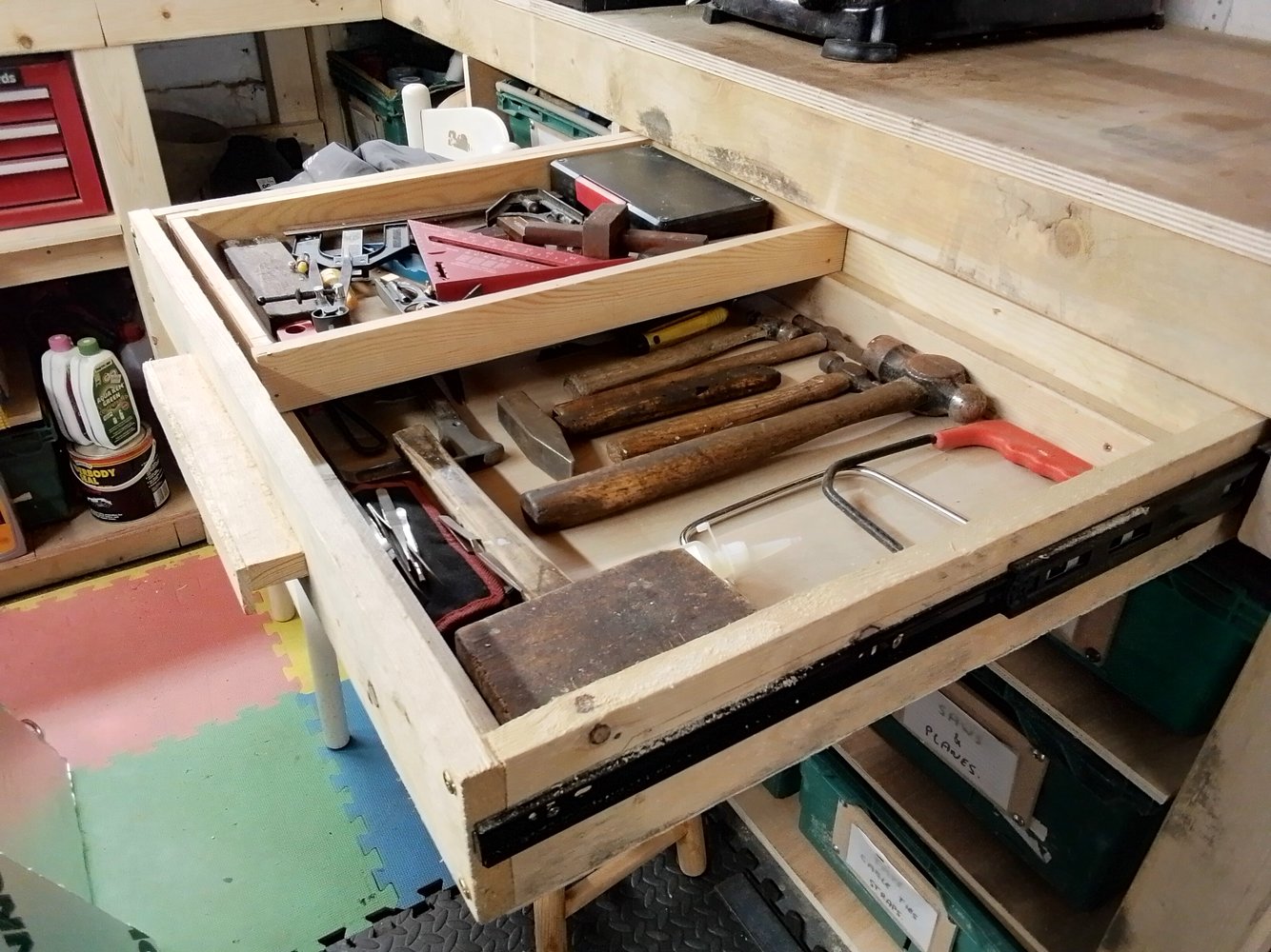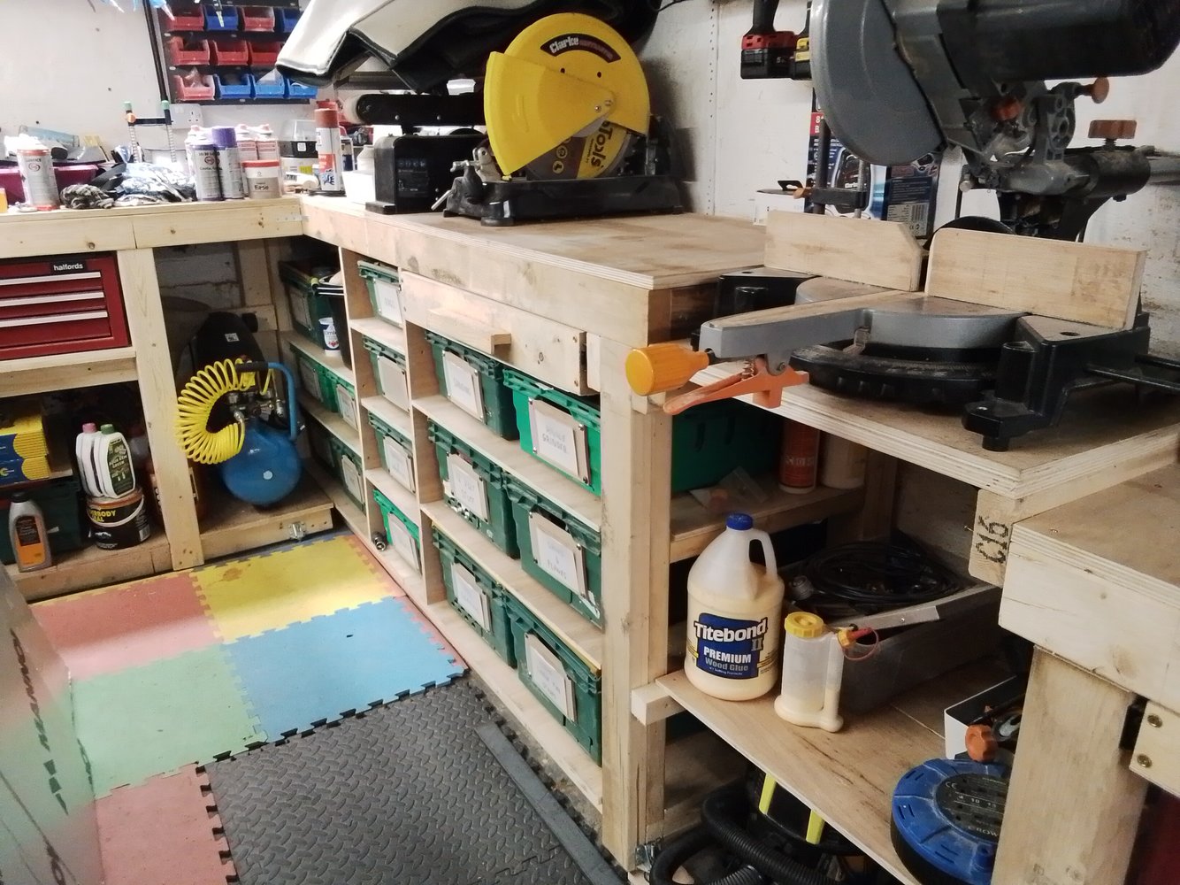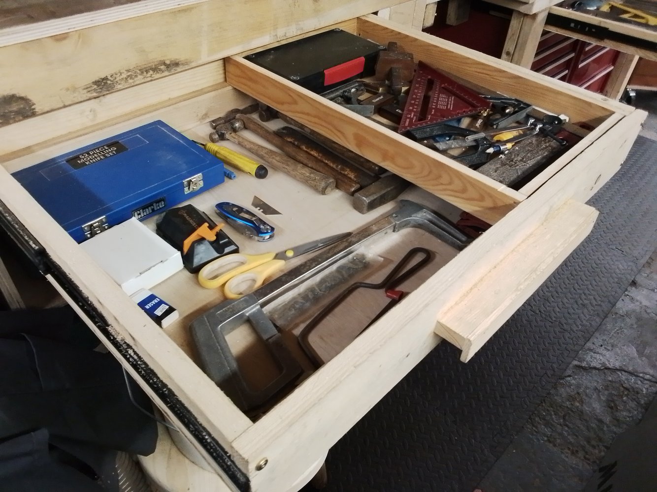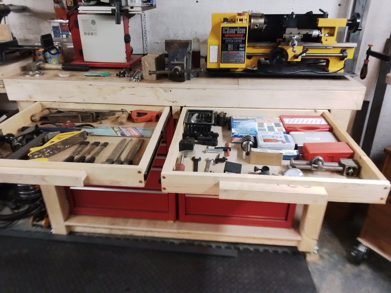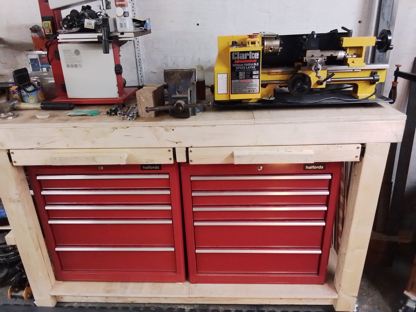 Having gotten fed up with stuff all over and the Heath Robinson benches made out of any old lengths of wood, (usually lorry timbers