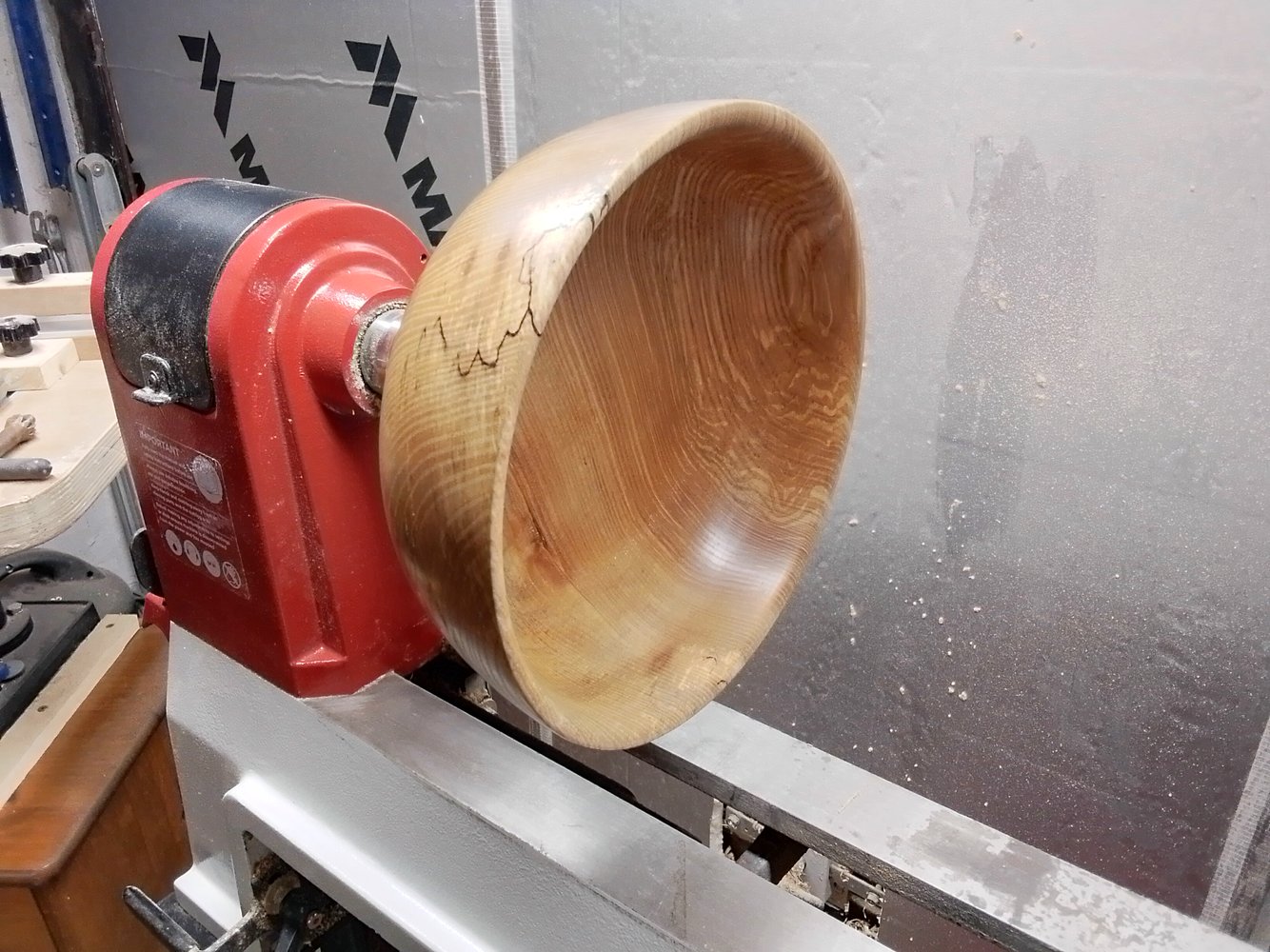 And as I've only been wood turning for a few months I'm chuffed to bits with my first "proper" bowl. Made from a lump of spalted ash that I bought at the woodworking show at Harrogate last weekend, it's destined for my big sister as a fruit bowl: