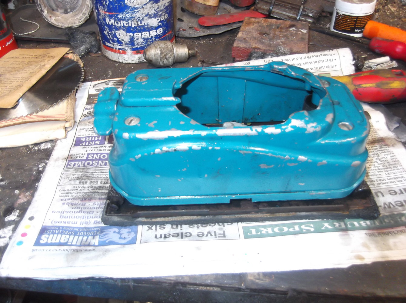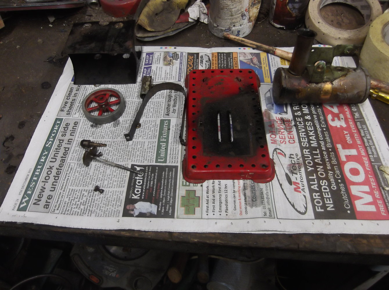 The base was split. Gas brazzing just distorted the frame. So I bribed a friend with Hob Nobs and he tig brazzed it together, dressed the dings and dents out and left it in grey primmer.