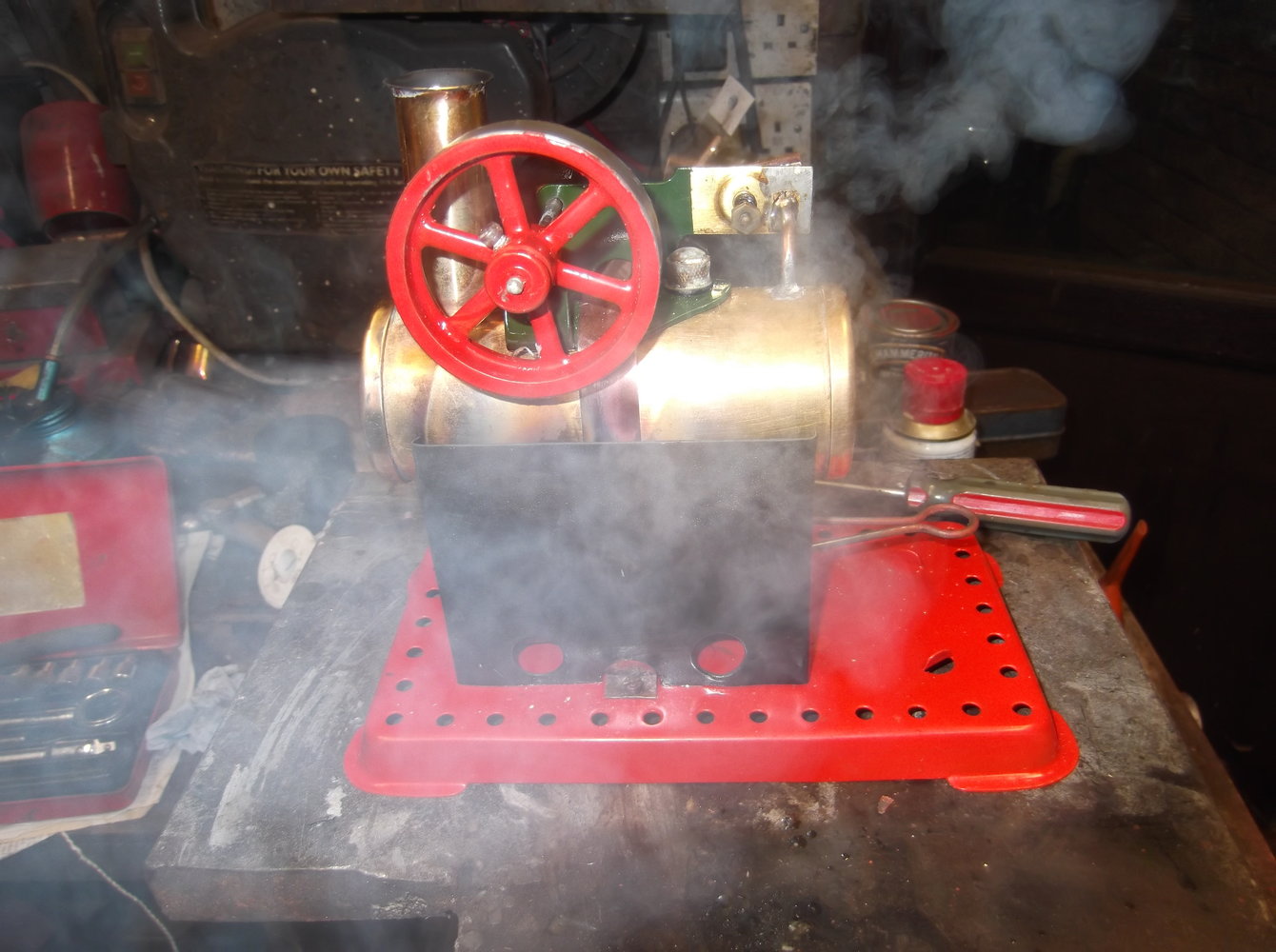 I tried spraying the base of mine, and like most of my painting attempts, it was disastrous, so I took it off and just "blacked" the base, the firebox and the cylinder/flywheel mount bracket, on the gas stove.. It gives a sort of "olde iron" industrial look to it perhaps