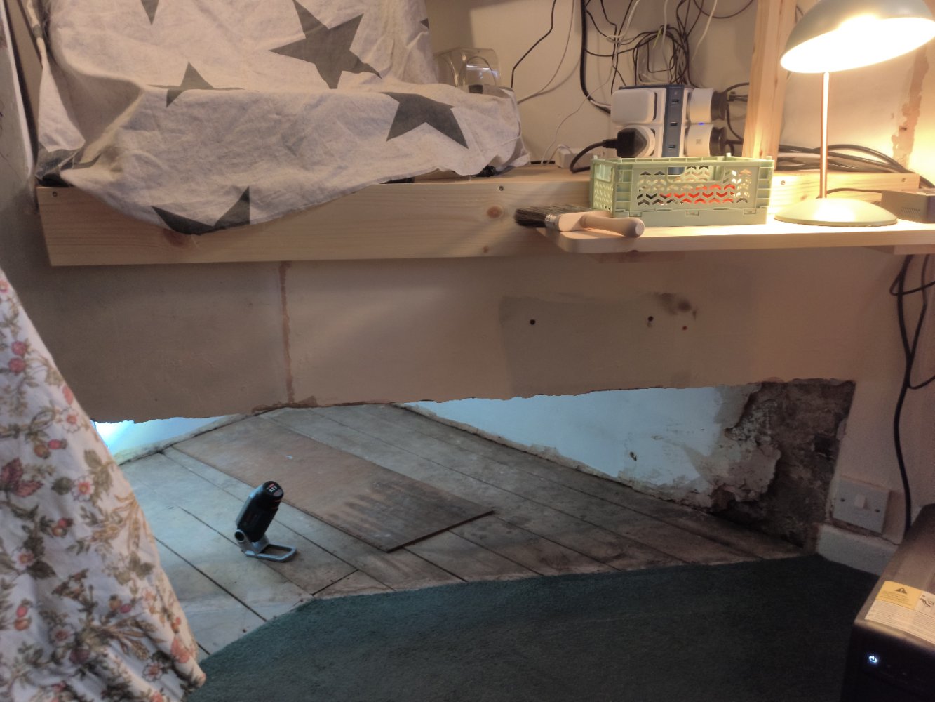 The delamination of the ply wood was repaired by glueing the loos parts down and in one case patching it.