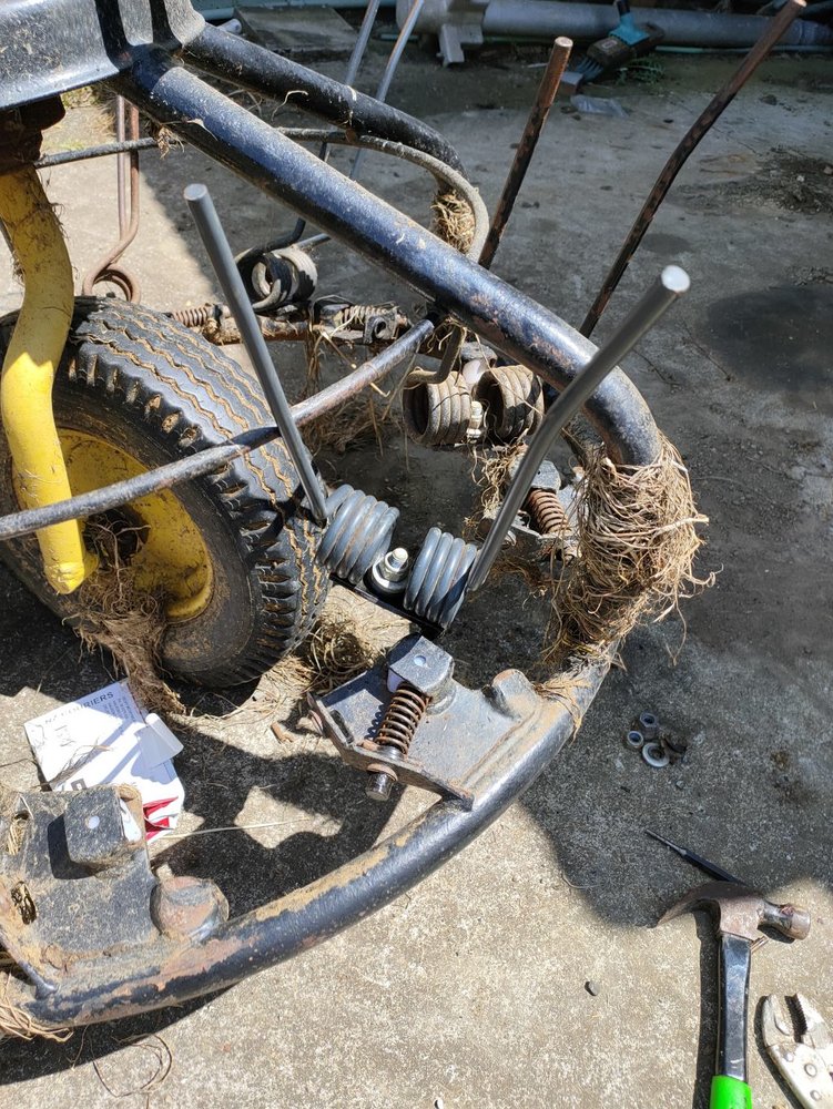 The (in)famous hay rake (https://www.mig-welding.co.uk/forum/threads/stuff-you-have-made-today.67127/page-646#post-1685885) has done a couple of seasons, but the PTO shaft expired with prejudice recently, when a universal joint gave up. It has seen a lot of life in the past. One of the tine holders that hold the spring tines also fell off from a combination of fatigue and rust, and some of the return springs that lift the tines up have broken.