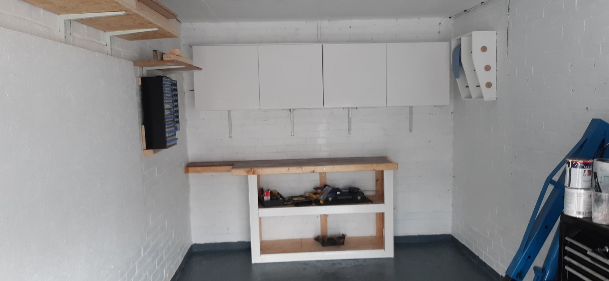 And a small workbench at one end, the engine crane and tool box fit snugly into the gaps either side, filling in the whole width, but id put another coat of paint on the floor before i rememered to get a picture. (And appologies for the rubbish pictures, I never remember until its too late).