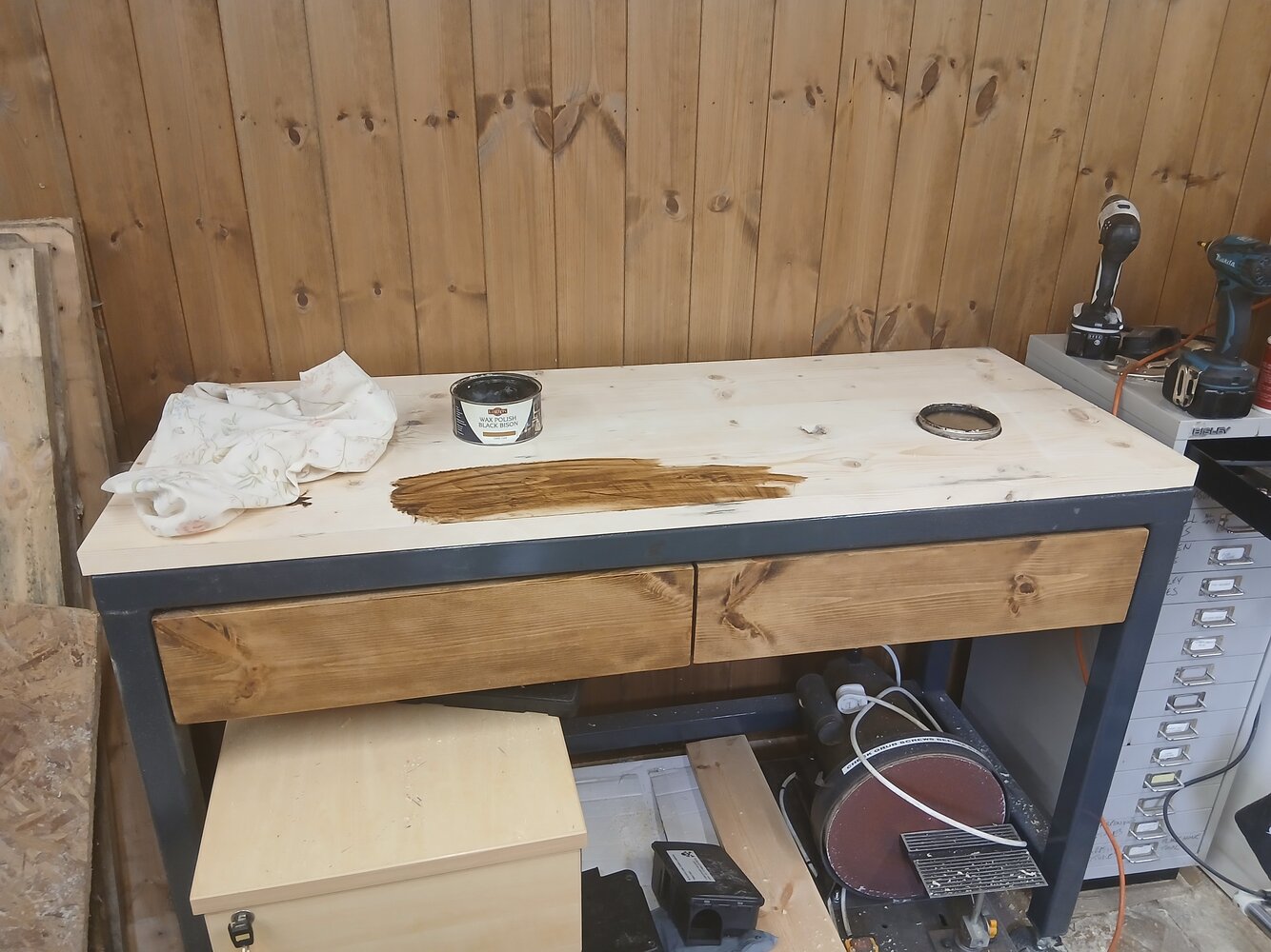 Nice job but I'd be inclined to move it out from the wall so the worktop space is on top of your new drawer instead of in front of it.Well, finished today! Made from pieces of treasure I'd been storing.
