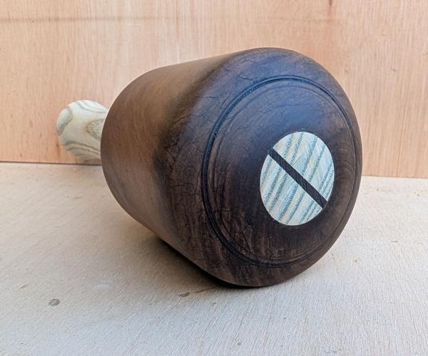Very nice, I imagine you could sell plenty of thoseI made a persuading stick out of a Lignum Vitae Crown Green bowling ball, a stick of Ash and an off-cut of Wenge for the wedge: