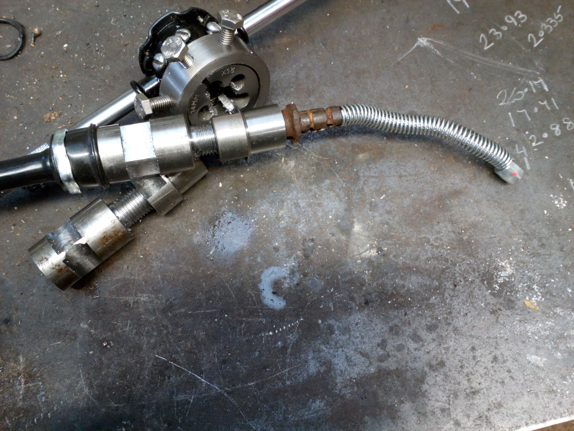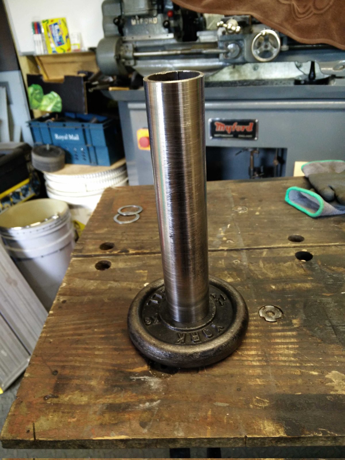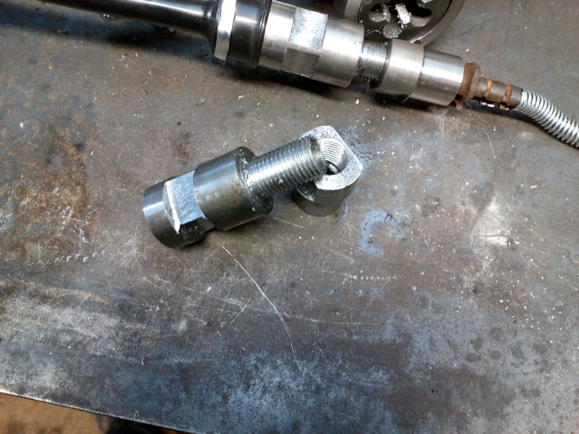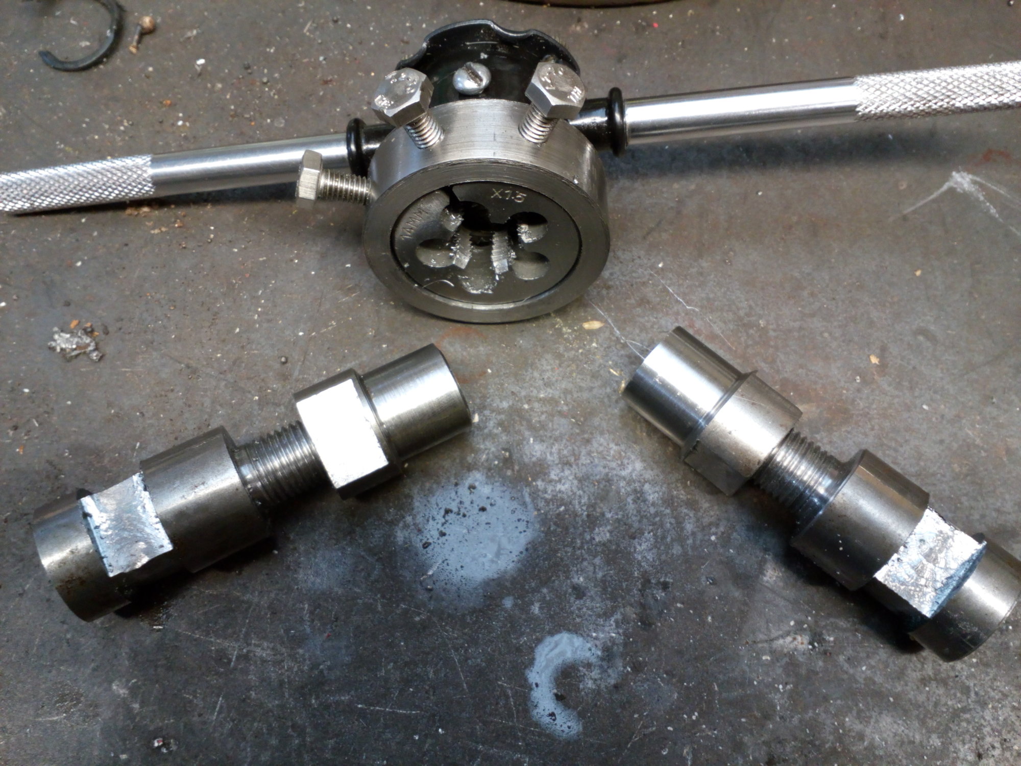Turned up on an arbor made from an old scaffolding nut and bolt held in the three jaw chuck. I have no idea what grade stainless it is but it turned remarkable easily with a DCMT carbide tip, the 1MM relief was taken at one pass with a CCMT in a boring bar.
