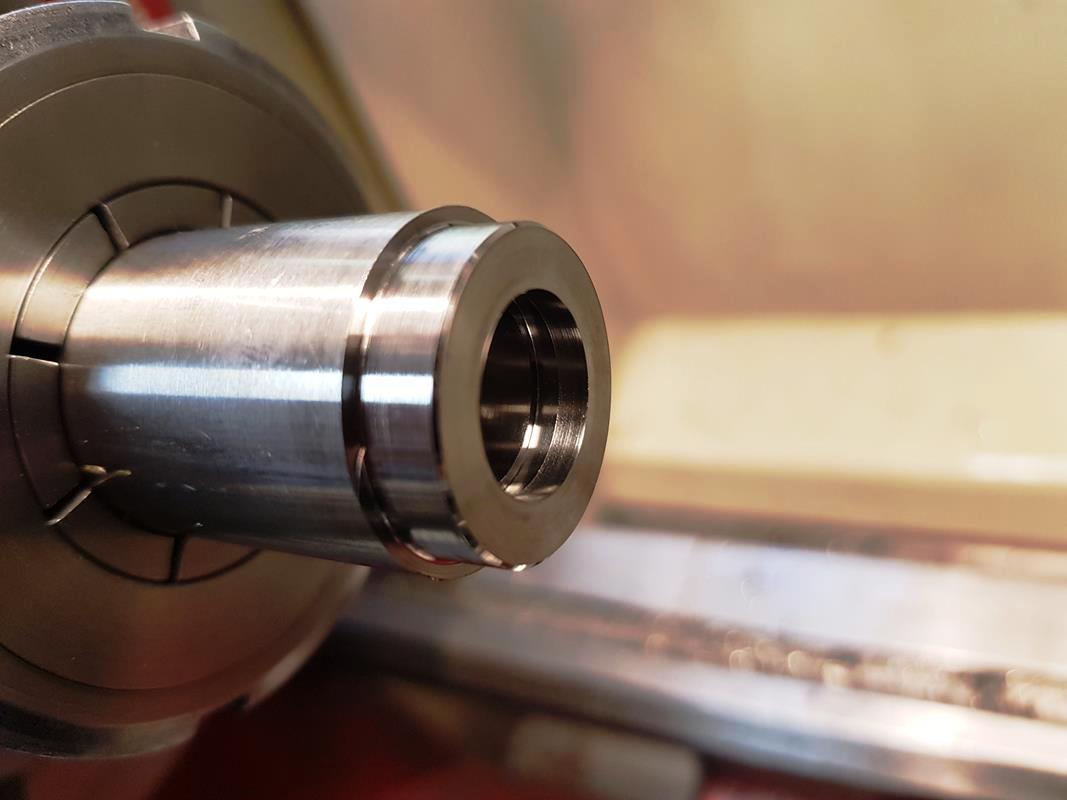 Today I reminded myself why I don't make stuff in titanium as a rule. It knocks hell out of the machines, the swarf is razor sharp, it lights up once in a while and scares you silly, it breaks inserts and destroys drills. Finishes well though.