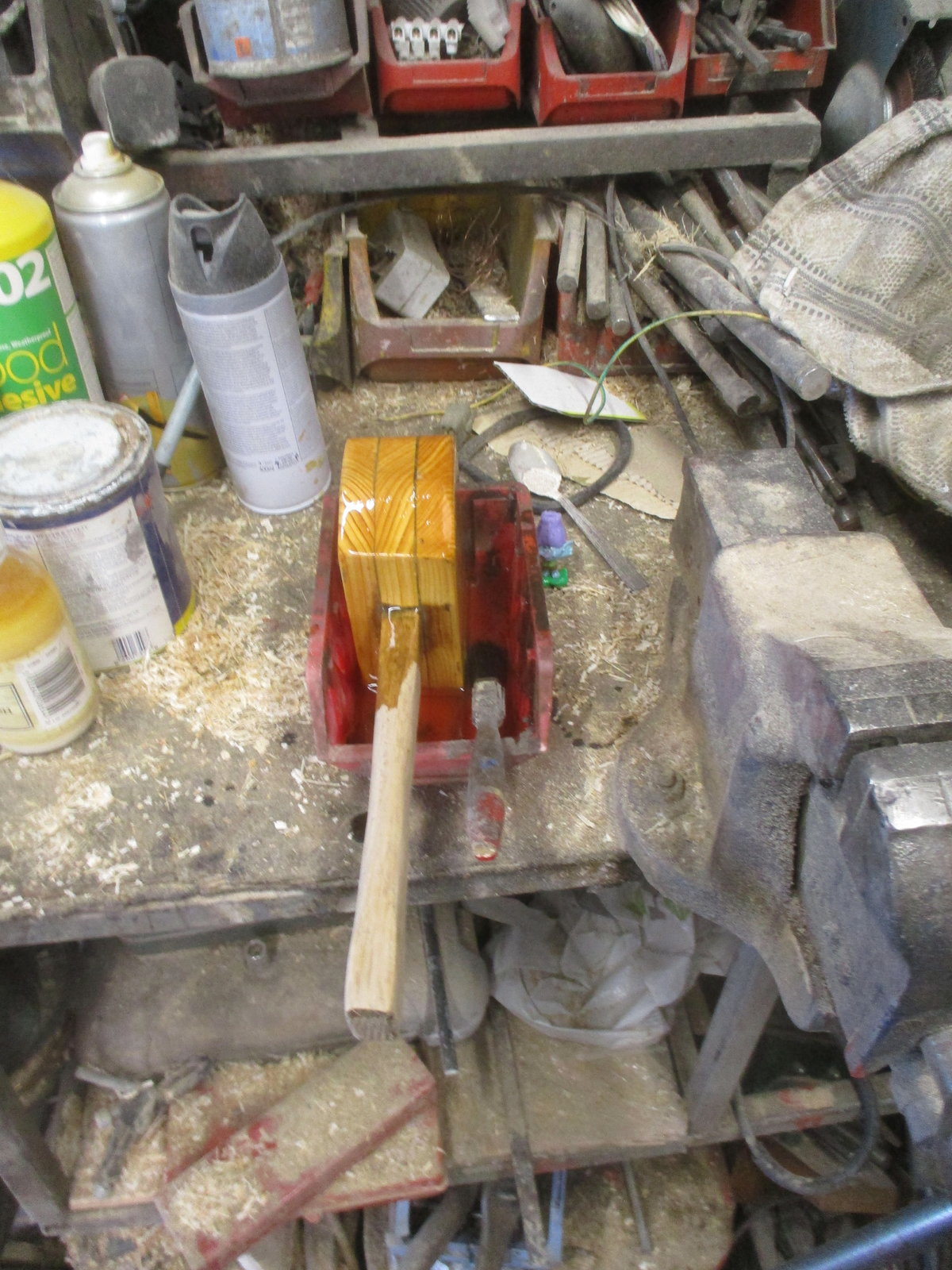 3 bits of scrap wood. The 2 outer ones are the same size. The inners ones are cut to suit the handle and tapered at 1:7, as are the 2 wedges.
