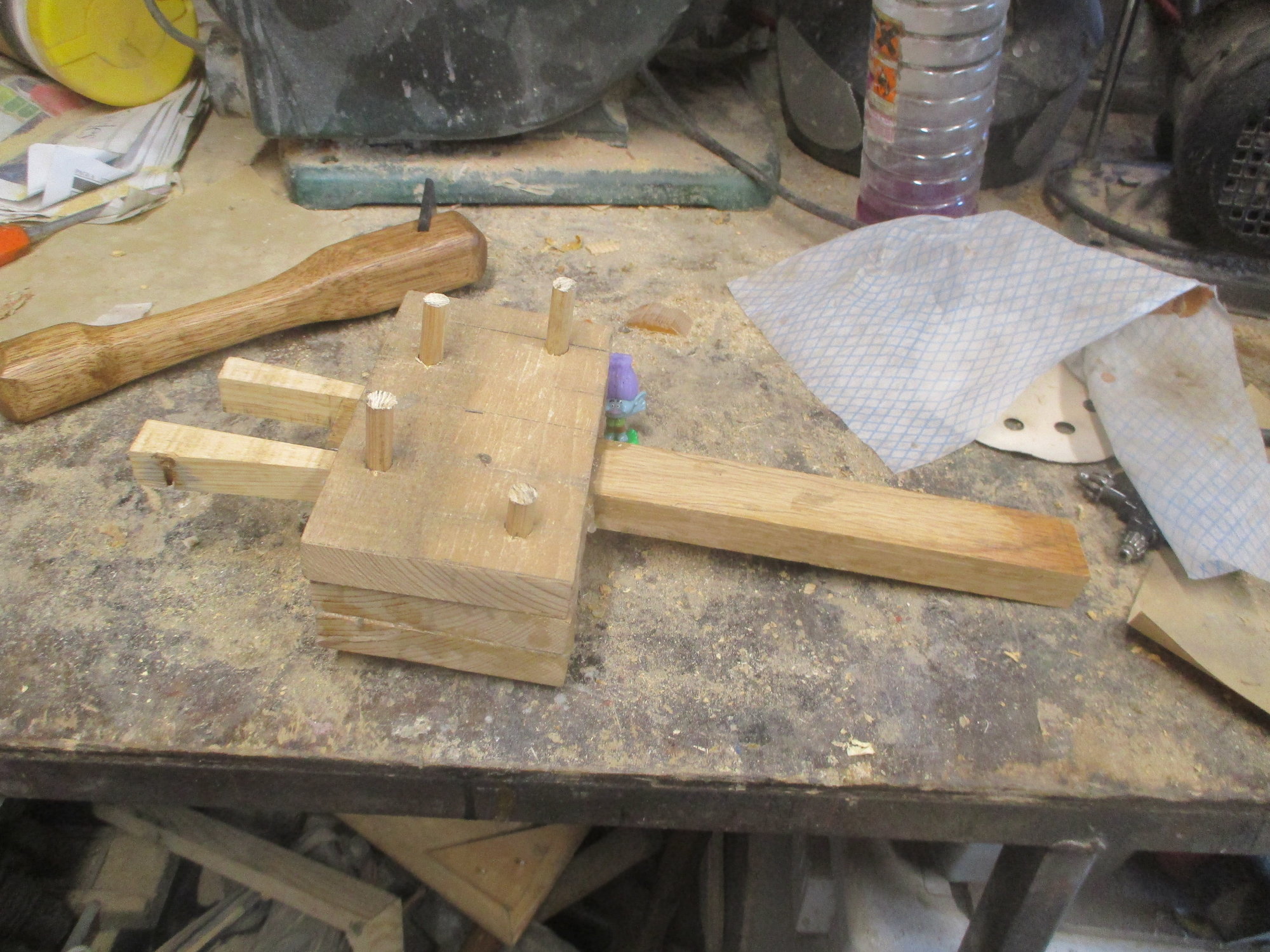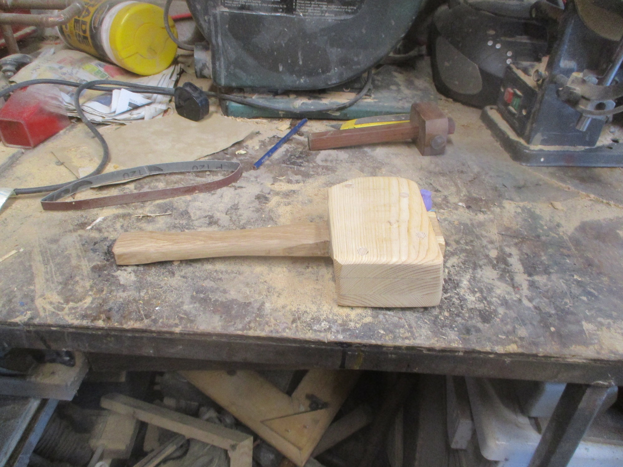 If you have hard wood for the head, beech is best, and a red wood for the handle you can make wood working mallet the same way.