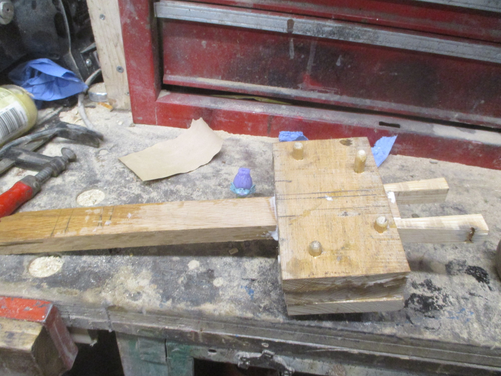 The head is doweled, only to give a bigger surface area for the PVA glue. Tip, I used a dowel chamfer tool to make the driving of the dowels in a lot easier.