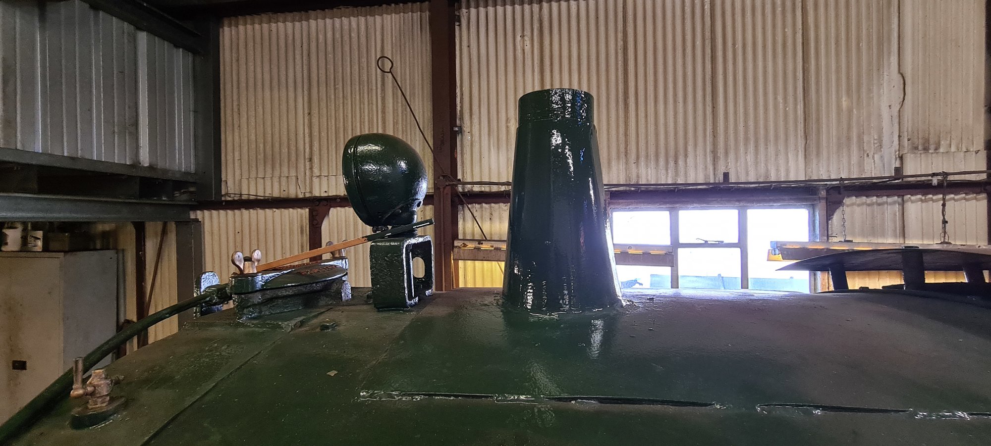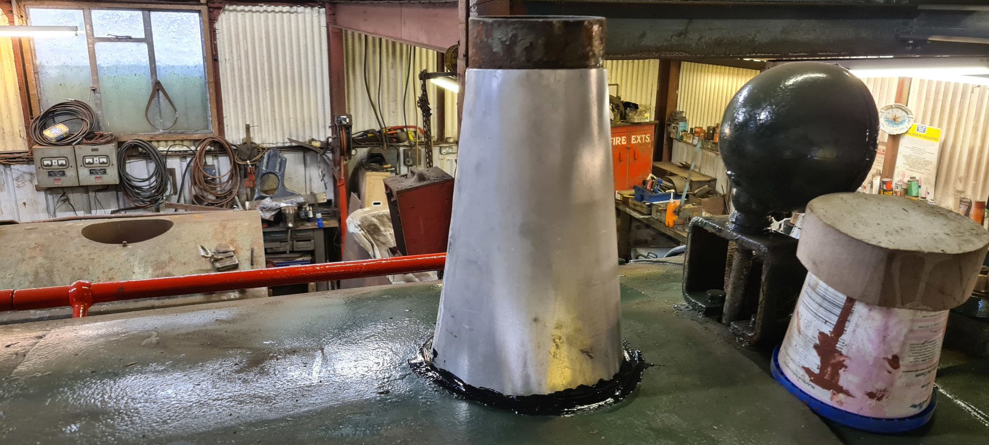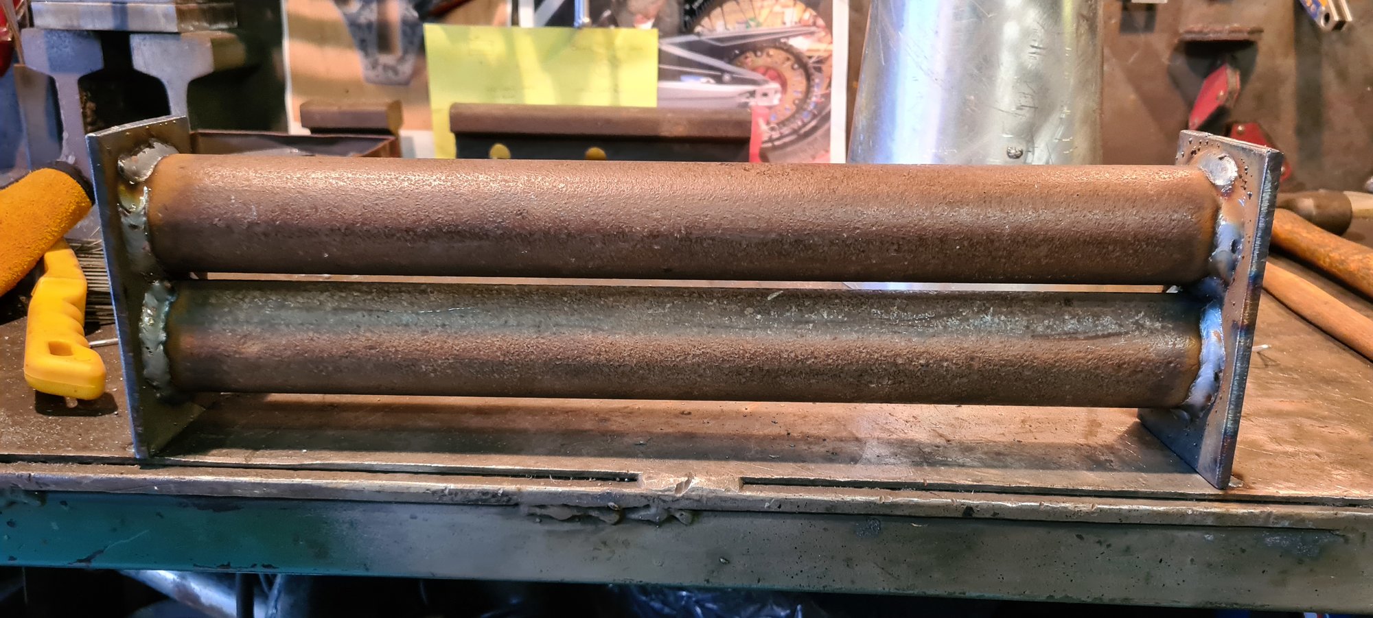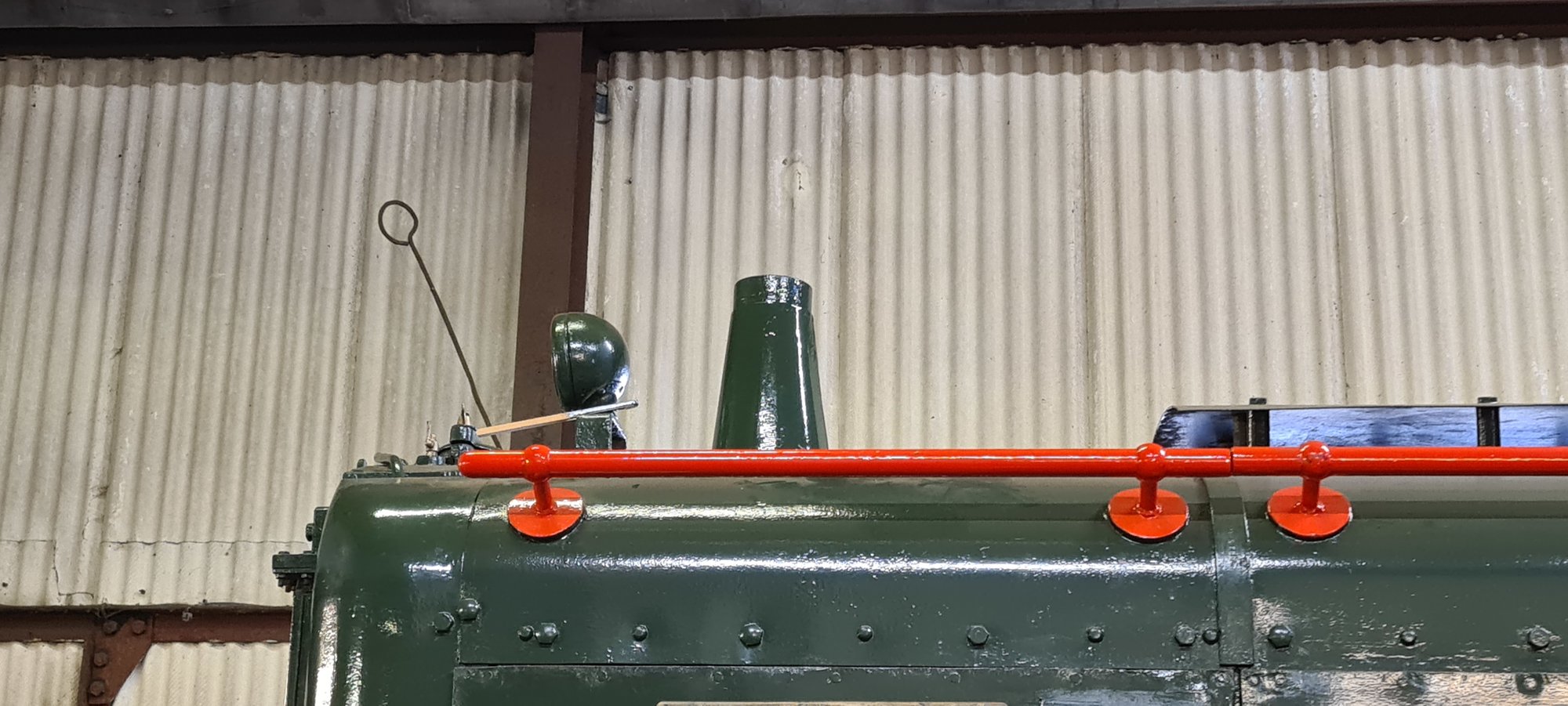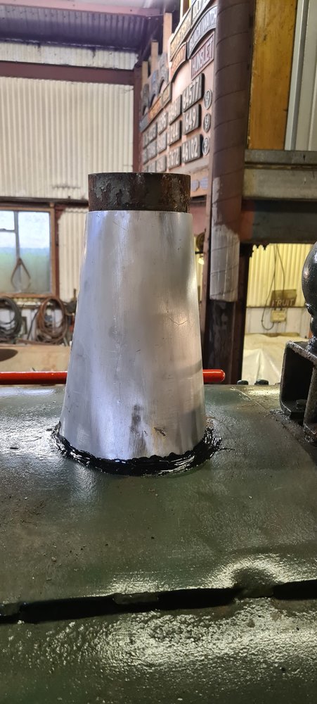 That's nice, can we see the whole locomotive please.not today but recently made a new shroud for one of the locomotives, no access to slip rollers so had to work with what i had to hand, made a former from a couple of bits of flat bar and a scaffold tube cut into two sections,