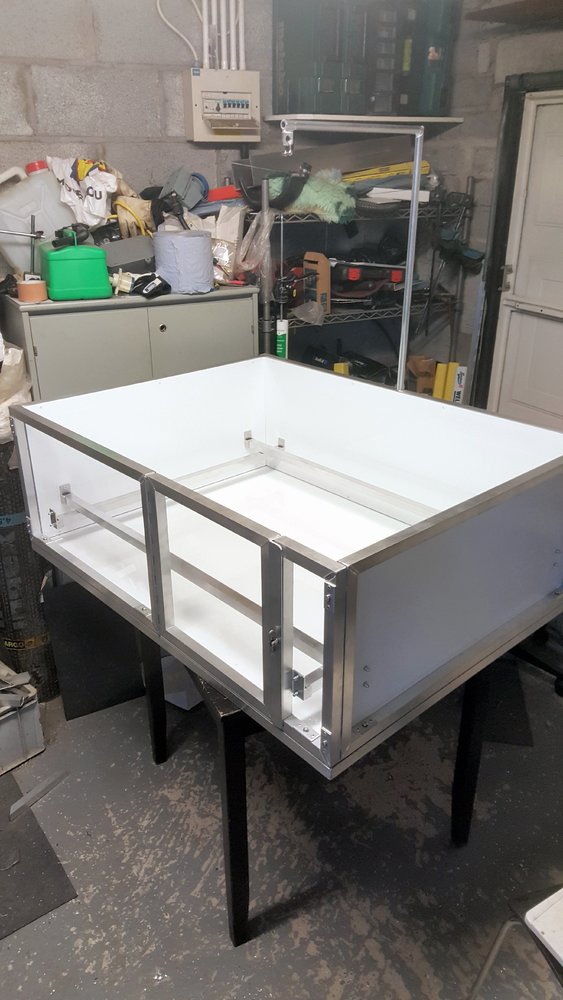 The folding feature did make it more complex and required tighter tolerances to make sure that all of the holes lined up in all positions, but indoor space is at a premium at our place, so I try to make things as compact as I can. We have been "boatless" for the past few years (except for our canoe), but that might change this summer, so I might be building a heavier variation on this stand, depending on what kind of powerplant the boat has. I've just been using this small motor to move our floating dock back and forth between our property and the nearest landing when we move the dock in and out of the river for the season.Last night I was drawing up an outboard engine stand that I am to be making shortly, well it will be 2 that I need to make, not folding so that simplified things and just castors but it is for slightly larger engines, 150HP Yammies.
