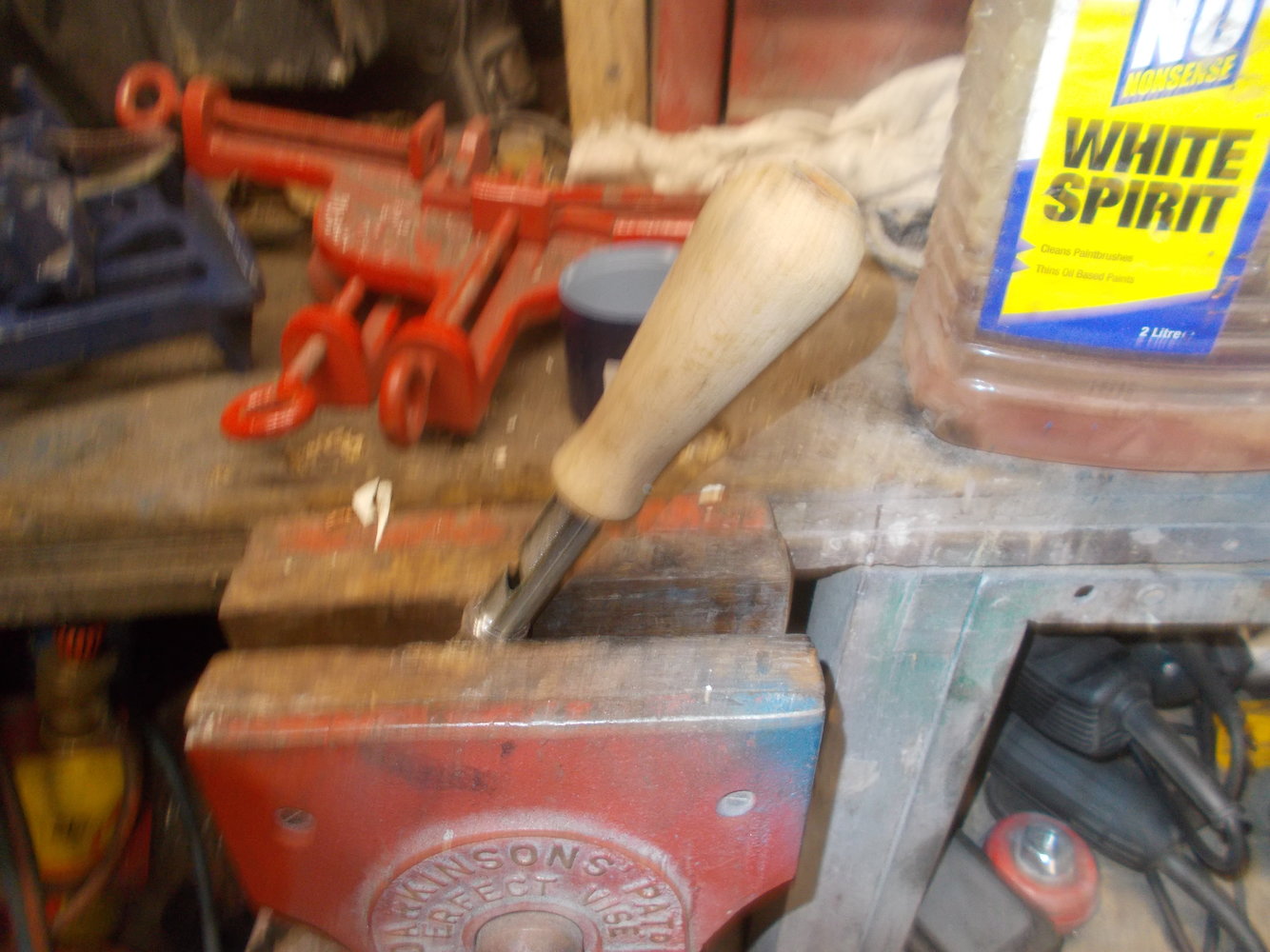 I've usually put 1/2 " of white spirit in a small tray & soaked the oil stone in it for 10 min or so then wiped the stone clean , done the other side then lightly oiled up with oil and a spray of WD 40 . Any cases got the white spirit treatment tooIn the picture below. Top LHS are two Stanley Yankee screwdrivers.