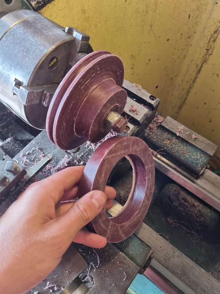 It was going well until I found a dirty great hard ring. Tons of noise and chatter, got through it, but thrown the face and OD well out. Having some lunch before I clock again and finish off the bore.Started on the small one, it turns lovely. OD and face turned, now to start on the bore.
