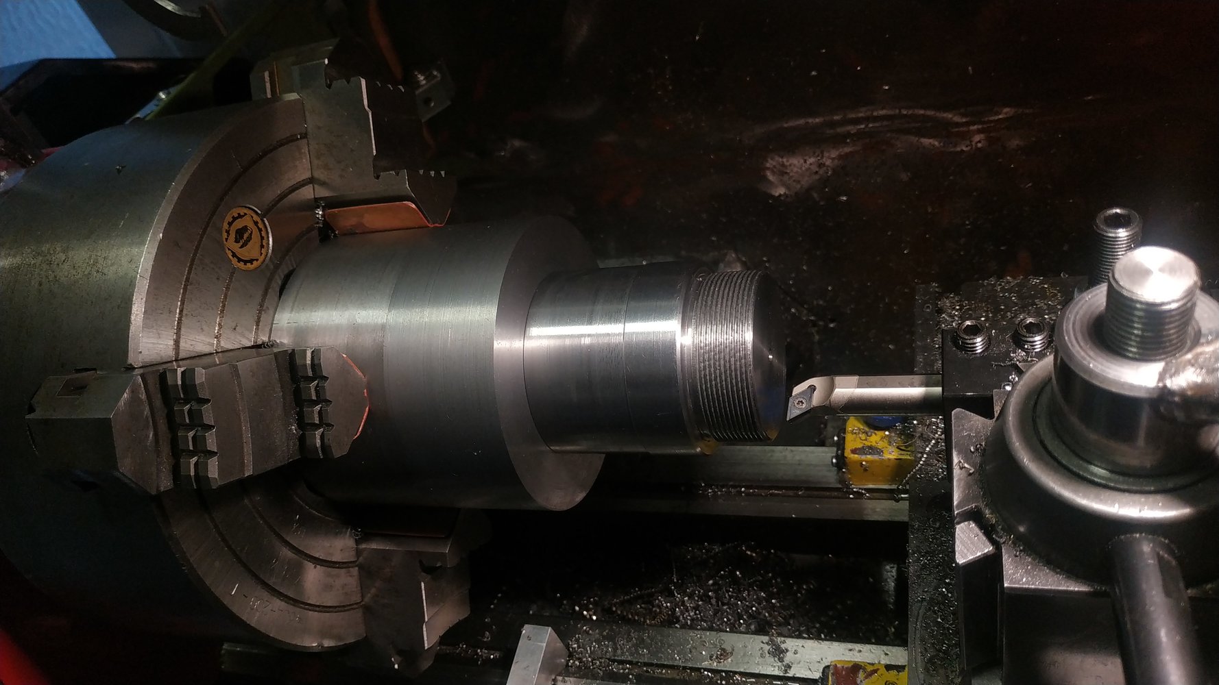 Now turning some usacut55 making a mini er11 die grinder collet chuck, 6mm shaft so I can hold the smaller bits, without them constantly pulling out!