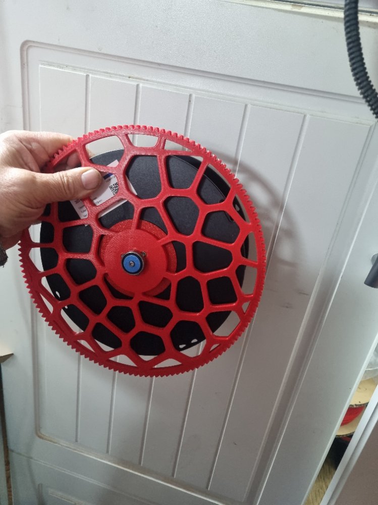 I would have printed something but I cant find an STL . I am after a spool holder that screws to the wall. Its probably on the principle of an angle grinder holder where a curved holder allows a spool to be placed flat on the wall. In my case it cant be totally flush as the Python spool holders have a bearing on both ends. The real awkward part is the spool holder has a large gear attached so you cant use a strip rack where the rolls all side side ways.View attachment 512953View attachment 512954