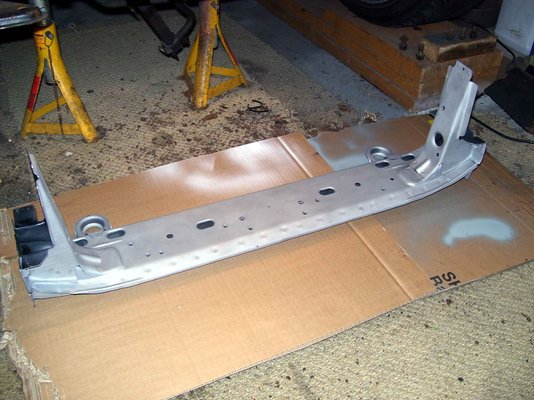 To my horror, I discovered that the front cross member had corroded to such a degree, it had buckled beyond repair.