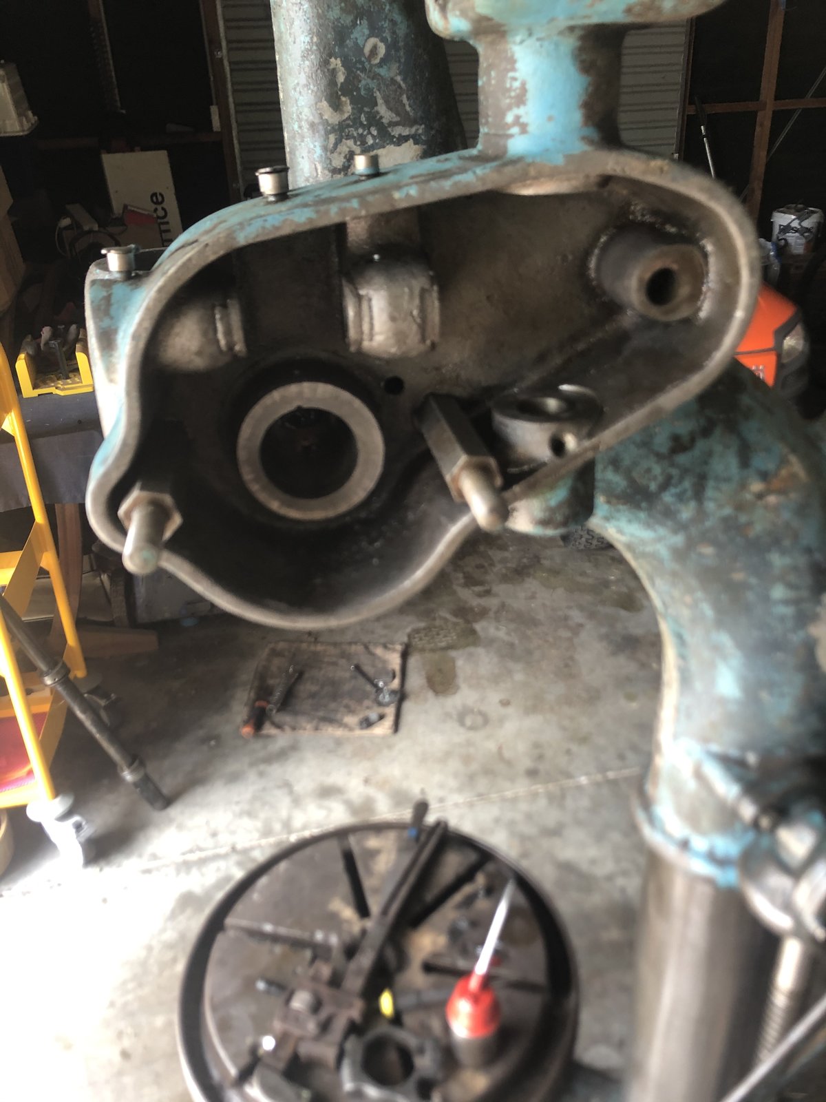 Today I cleaned up the internals of the skew gear which controls the table rise/fall. It was full of grease and was turning very slowly. The gears were painted too - not sure why this had been done, was the light blue repaint not original. Now it is degreased, oiled and works like a dream.