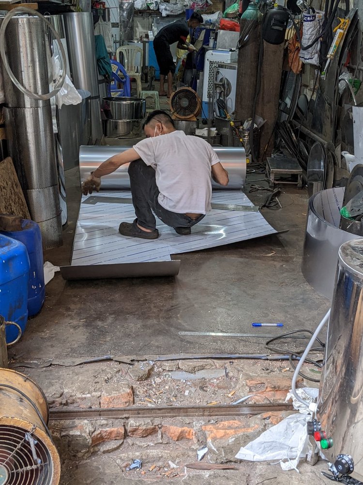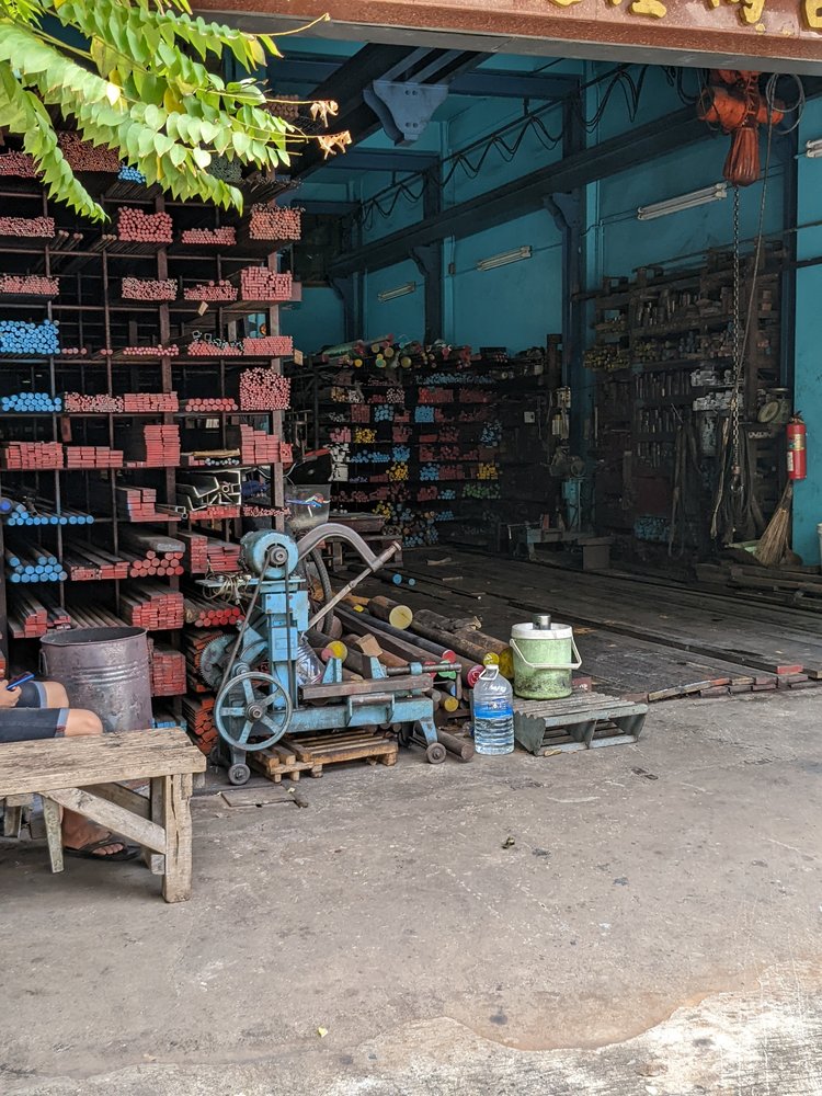 I loved those places, when I lived over that neck of the woods, you could walk in and eyeball what sizes were available, ask the price, get it cut to suit, or get it delivered, all for a very reasonable price.I don't know how they do it. It's also in a busy street, called tin street as they make tinware there, silk street is for silk, tobacco street for tobacco etc, etc. So passers by could suffer arc eye too. When we walked by yesterday it was rammed with locals and tourists all could get arc eye! View attachment 365795View attachment 365796View attachment 365797I'm fascinated with what you can get here, the steel stockists are amazing, right in the middle of the city too. They carry several 6m sections of box and angle home on their scooters holding on their shoulders whilst steering with their other hand!