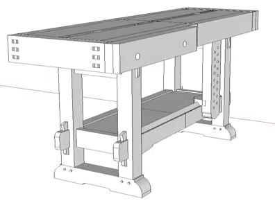 The door clamping idea is very good - maybe add the facility in one bay for a sliding post to suit any length (see the upright thing with dog holes in this bench [YT Woodworking, the Samurai workbench] - I do not know the proper name for it).